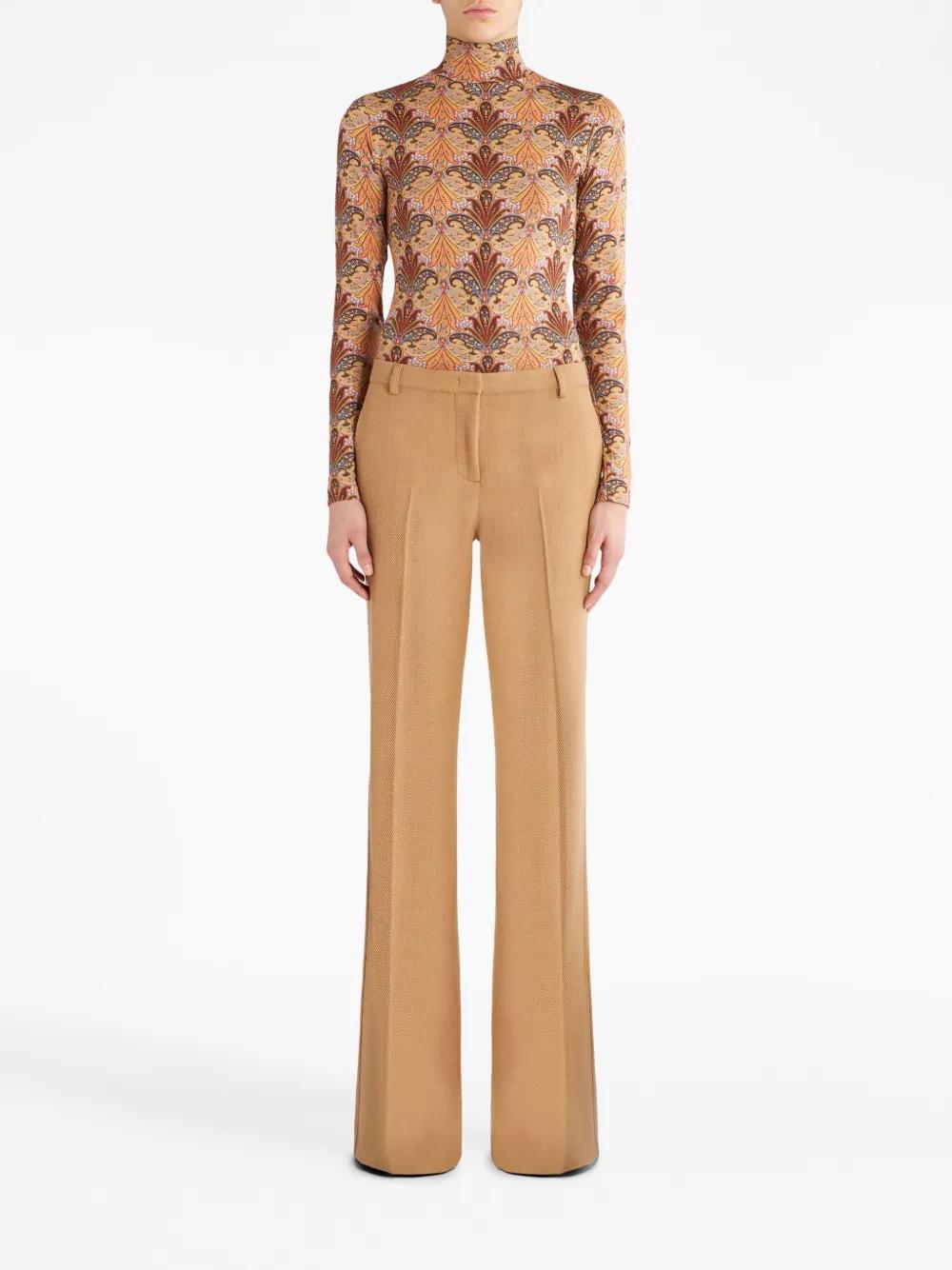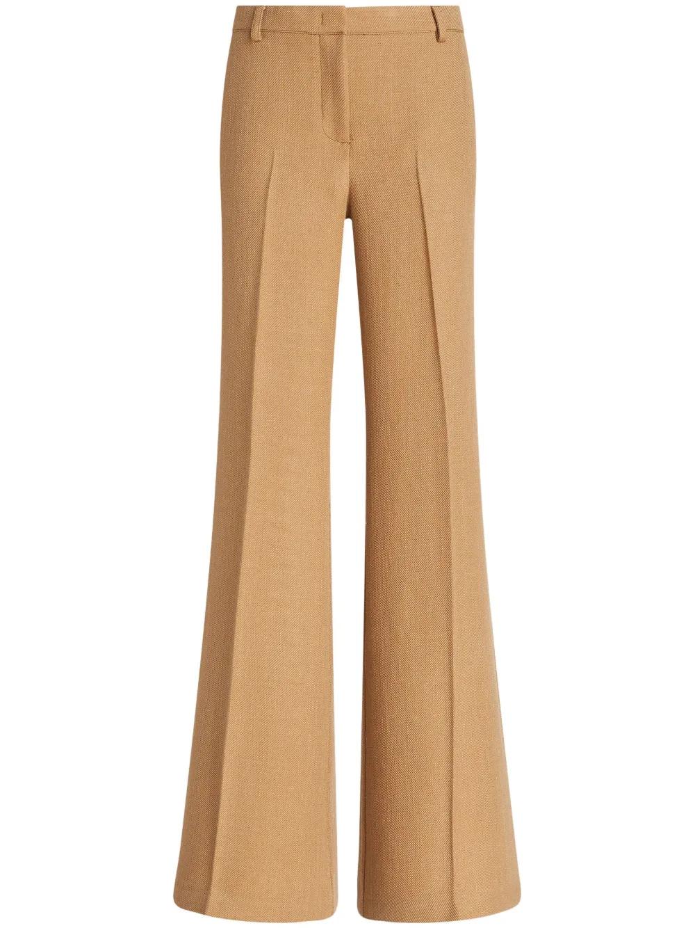 light brown belt loops low-rise concealed front fastening pressed crease two side slit pockets two rear welt pockets flared