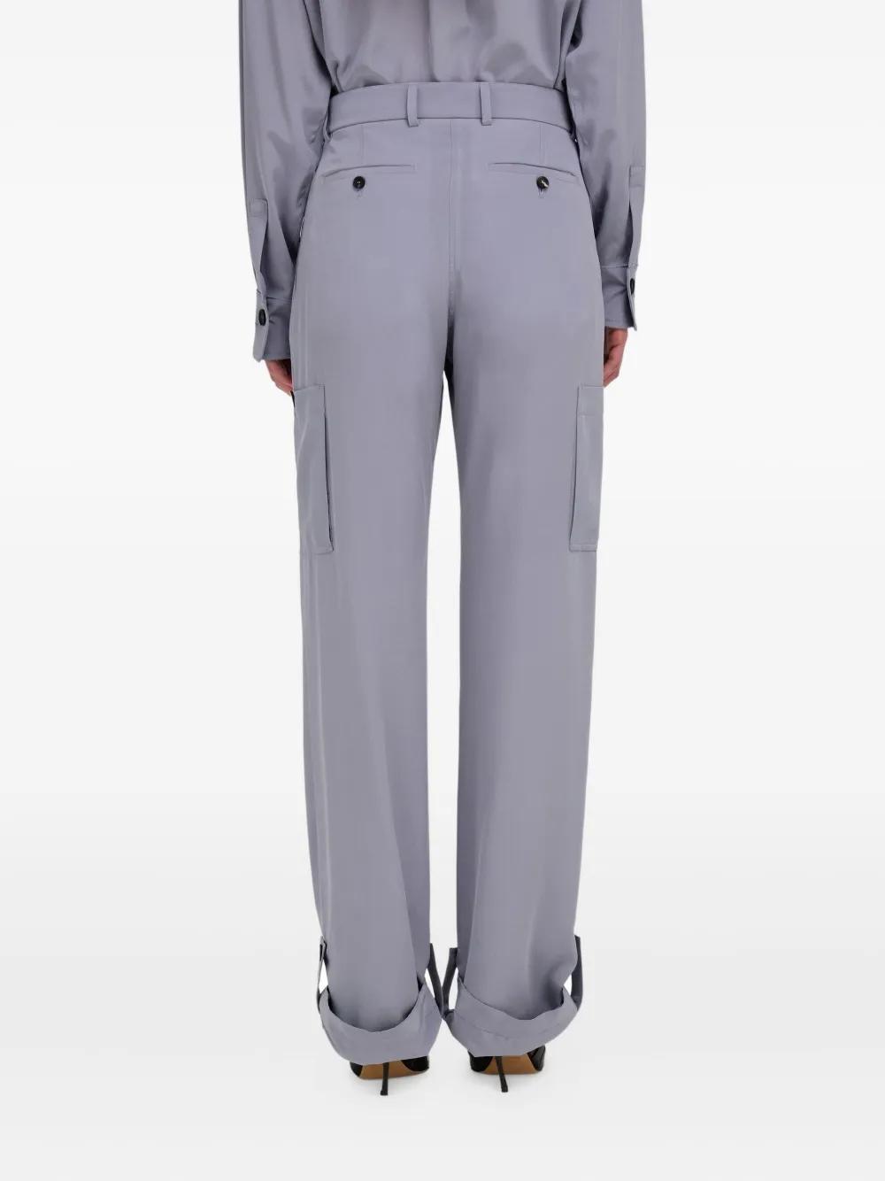 grey cargo pockets cuffed ankles concealed front fastening straight leg high waist