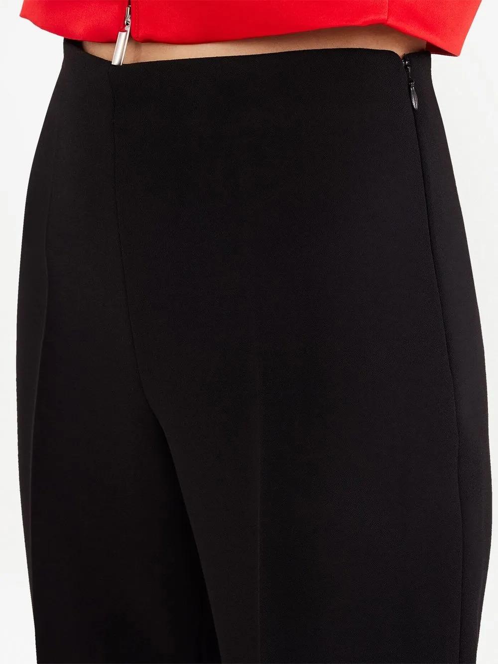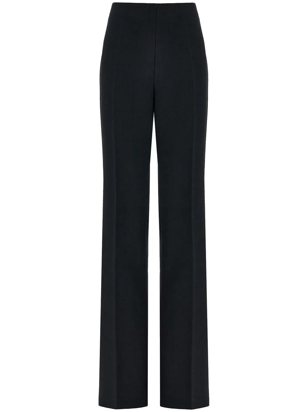 black crepe texture pressed crease high waist concealed side zip fastening straight leg long length