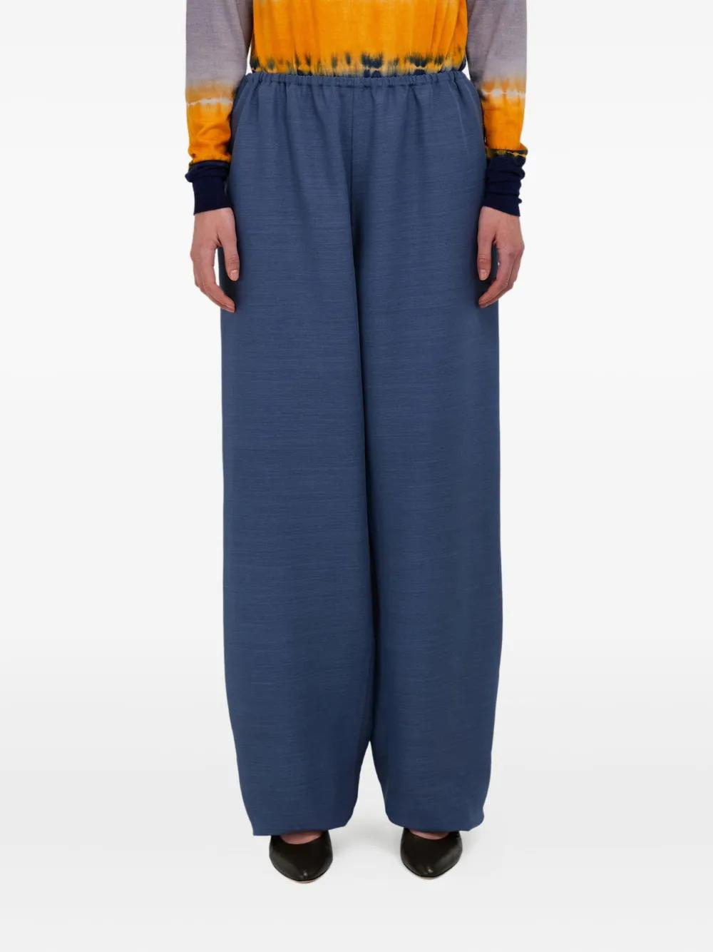 black pleated design wrap-around waist belt fastening side pockets straight leg