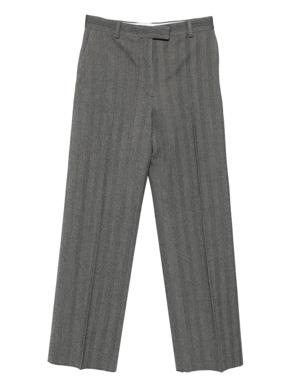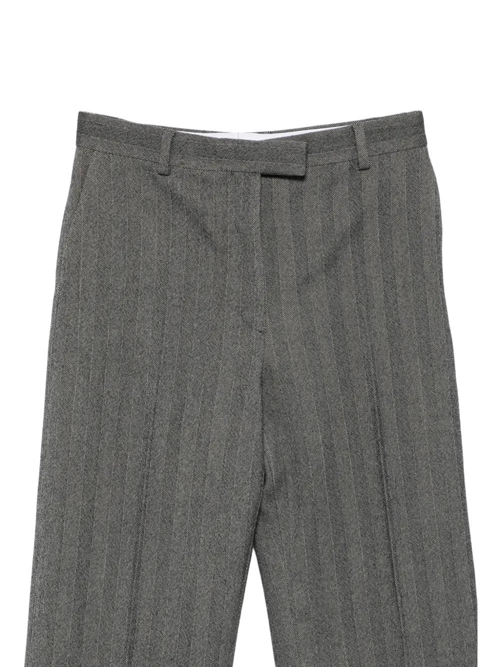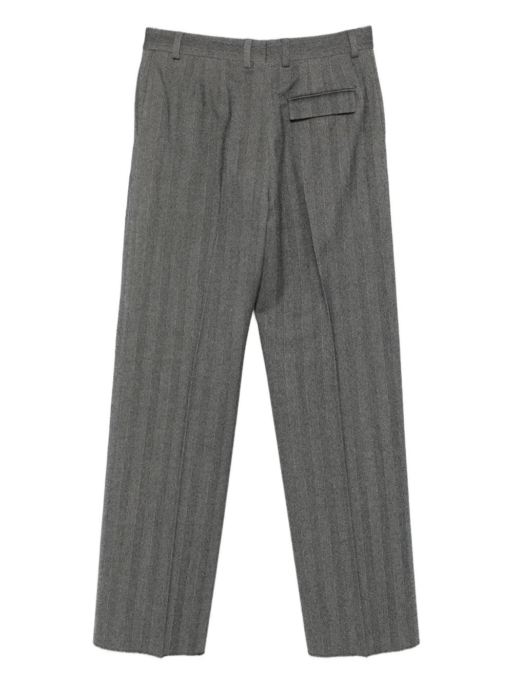 grey herringbone pattern belt loops back pocket concealed fastening straight leg