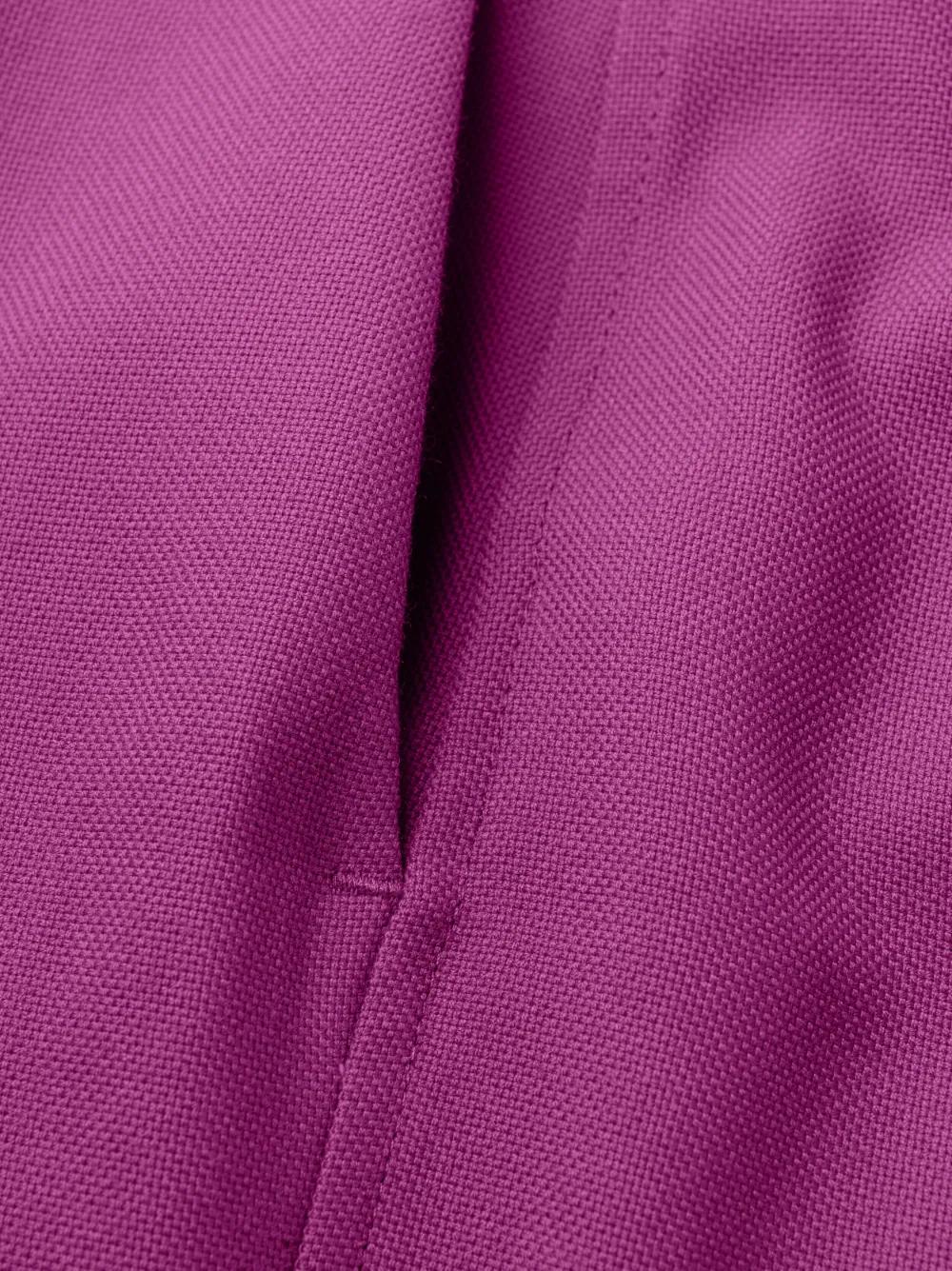grape purple recycled polyester blend cotton low-rise pleat detailing belt loops concealed front fastening two side slash pockets rear welt pocket pressed crease straight leg
