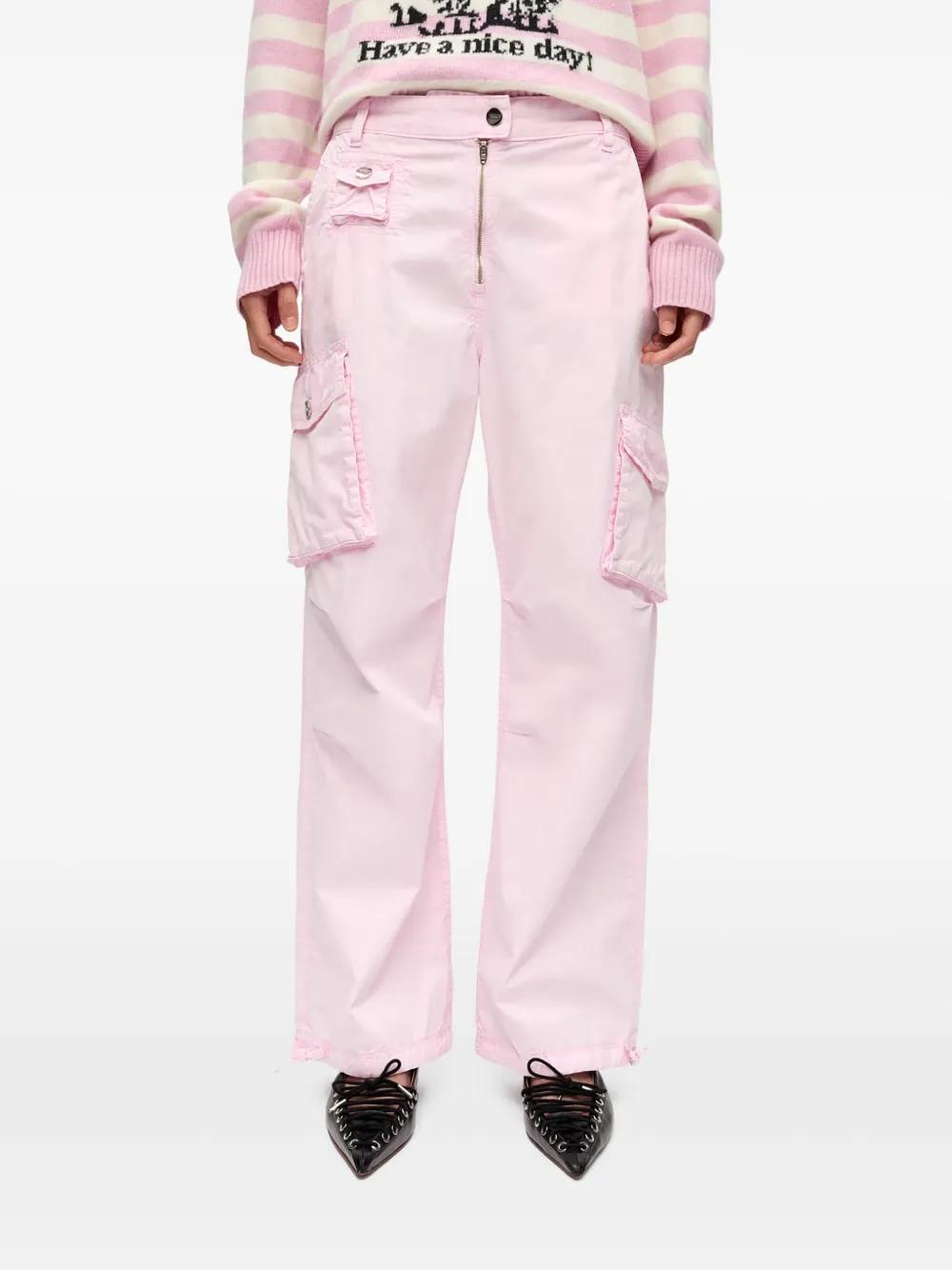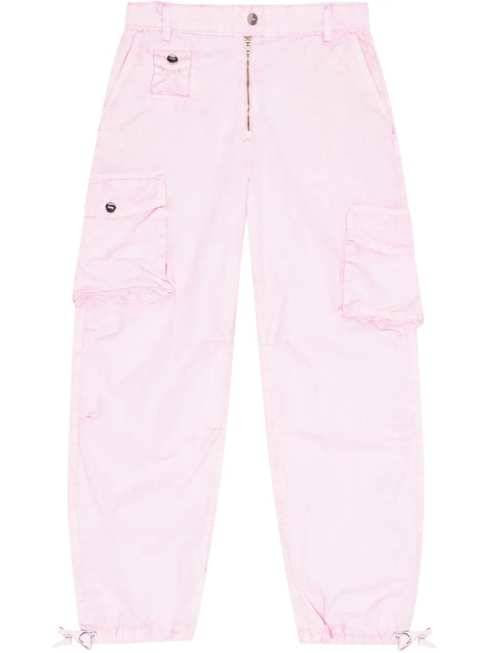 pink front button and zip fastening two side inset pockets multiple cargo pockets drawstring cuffs