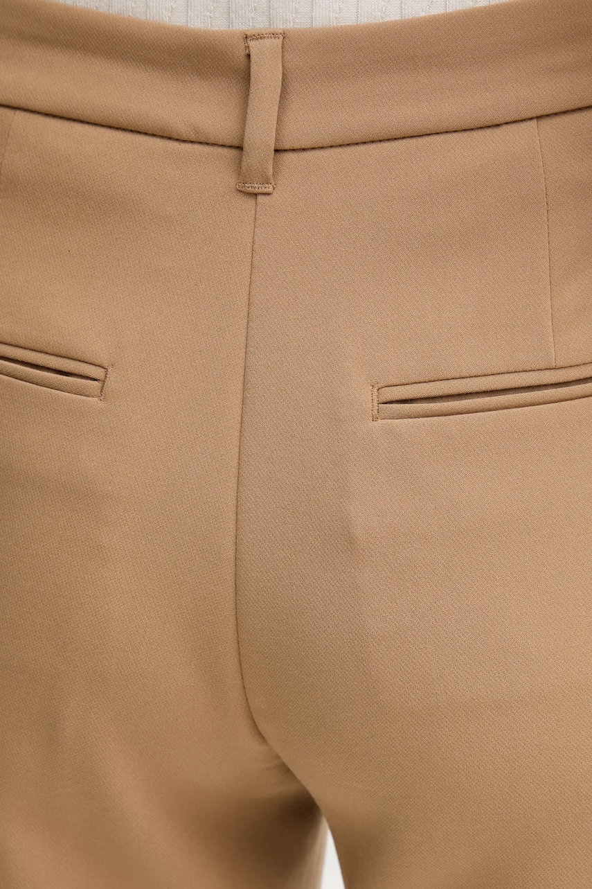 - Model z podwyższoną talią i zapięciem na suwak, guzik i haftki. - Dwie wsuwane kieszenie boczne. - Wsuwana kieszeń na pośladku. - Nogawka zaprasowana w kantkę. - Prosta nogawka. - Szerokość w pasie: 36 cm. - Szerokość w biodrach: 47 cm. - Wysokość stanu: 31 cm. - Szerokość nogawki: 30 cm. - Szerokość nogawki na dole: 25,5 cm. - Długość wewnętrzna nogawki: 78 cm. - Wymiary podane dla rozmiaru: 36.