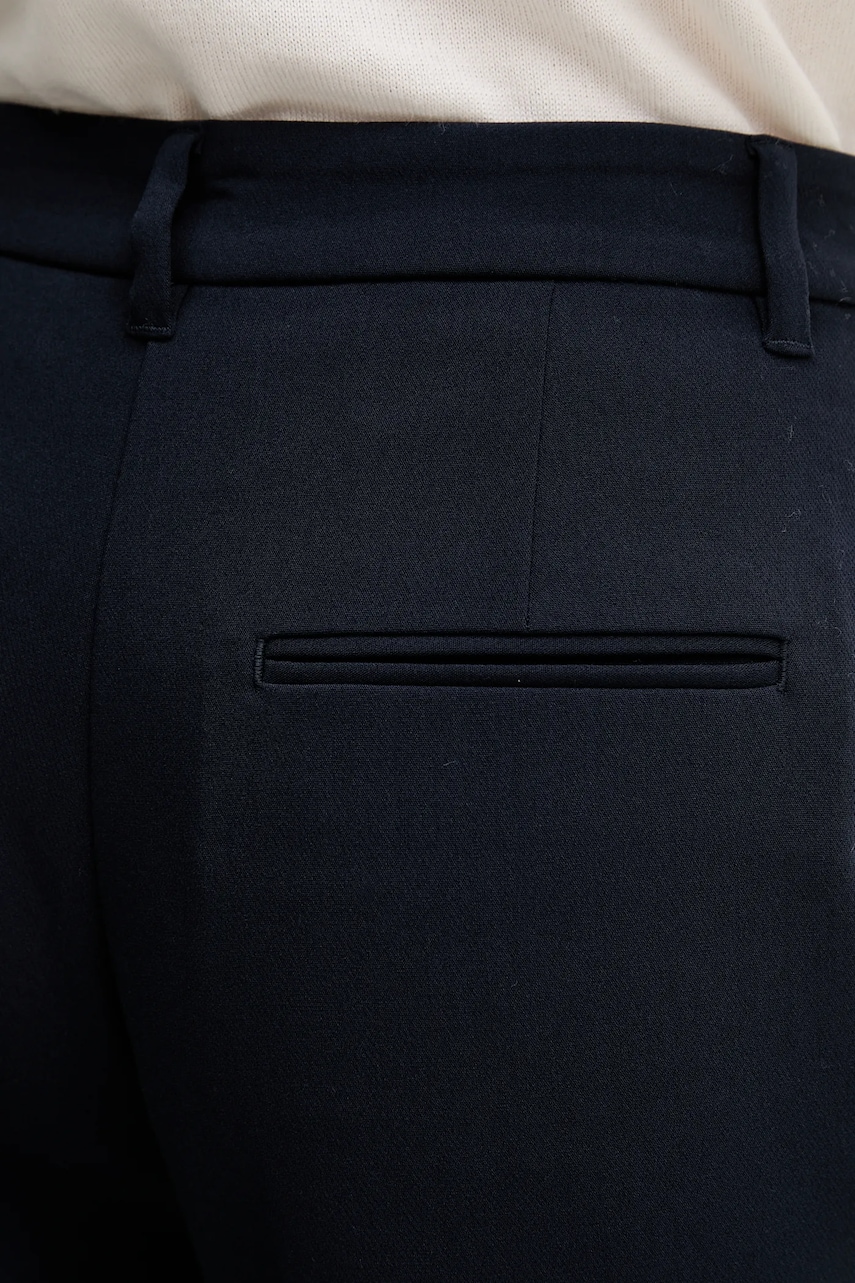 - Model z podwyższoną talią i zapięciem na suwak, guzik i haftki. - Dwie wsuwane kieszenie boczne. - Wsuwana kieszeń na pośladku. - Nogawka zaprasowana w kantkę. - Prosta nogawka. - Szerokość w pasie: 36 cm. - Szerokość w biodrach: 47 cm. - Wysokość stanu: 31 cm. - Szerokość nogawki: 30 cm. - Szerokość nogawki na dole: 25,5 cm. - Długość wewnętrzna nogawki: 78 cm. - Wymiary podane dla rozmiaru: 36.