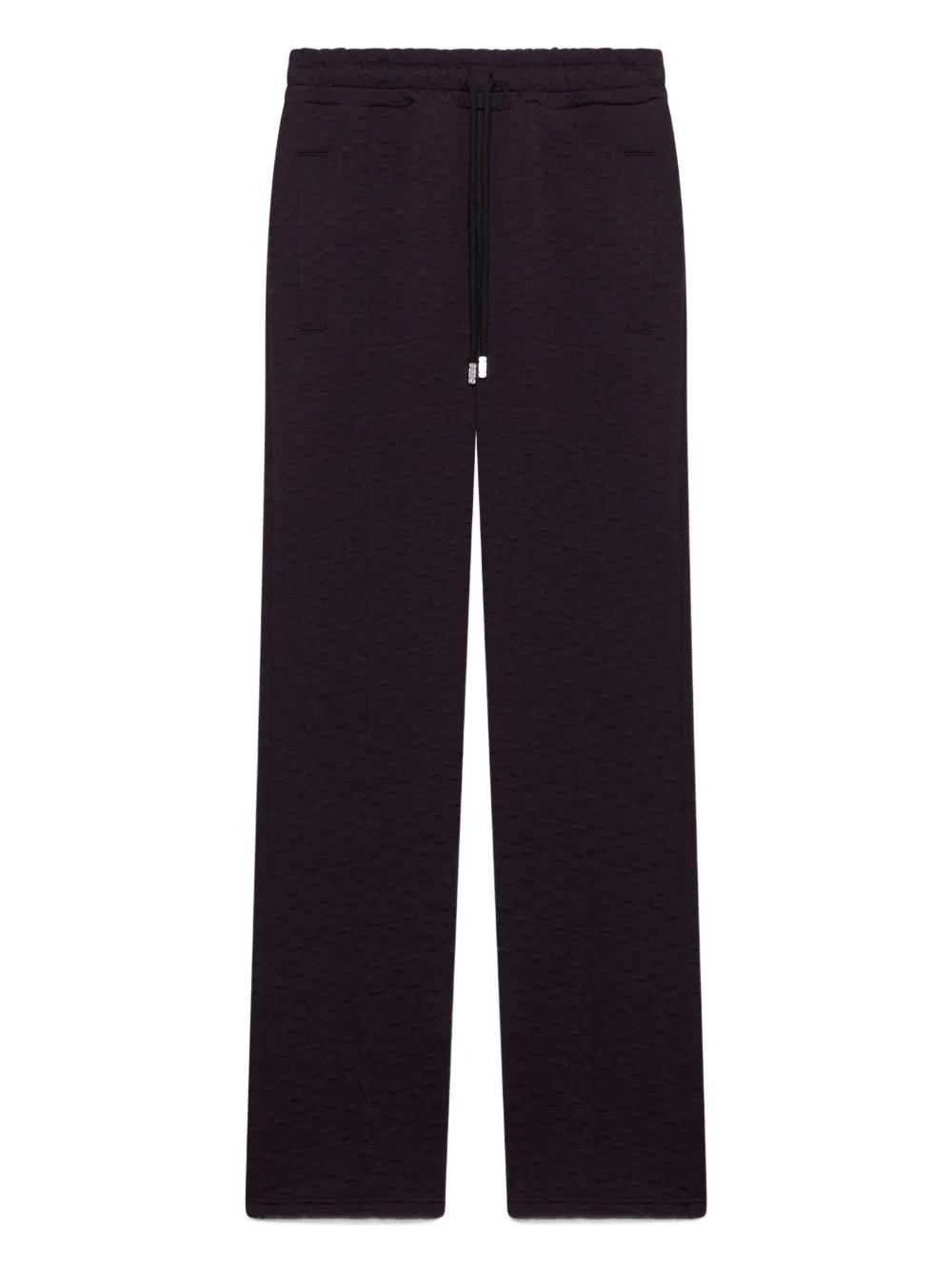 bordeaux monogram pattern drawstring fastening side pockets straight leg elasticated waistband