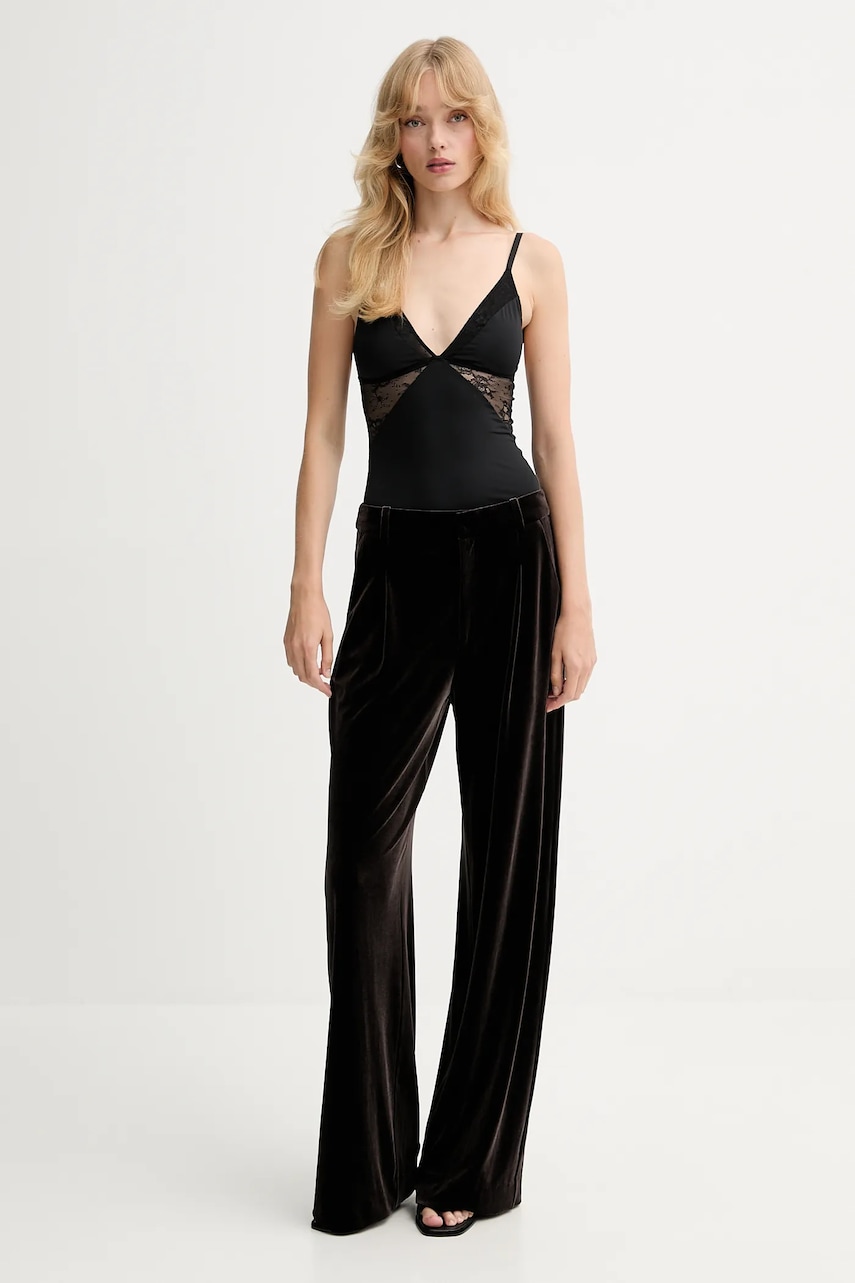 Gestuz spodnie welurowe damskie kolor brązowy szerokie high waist 10910718