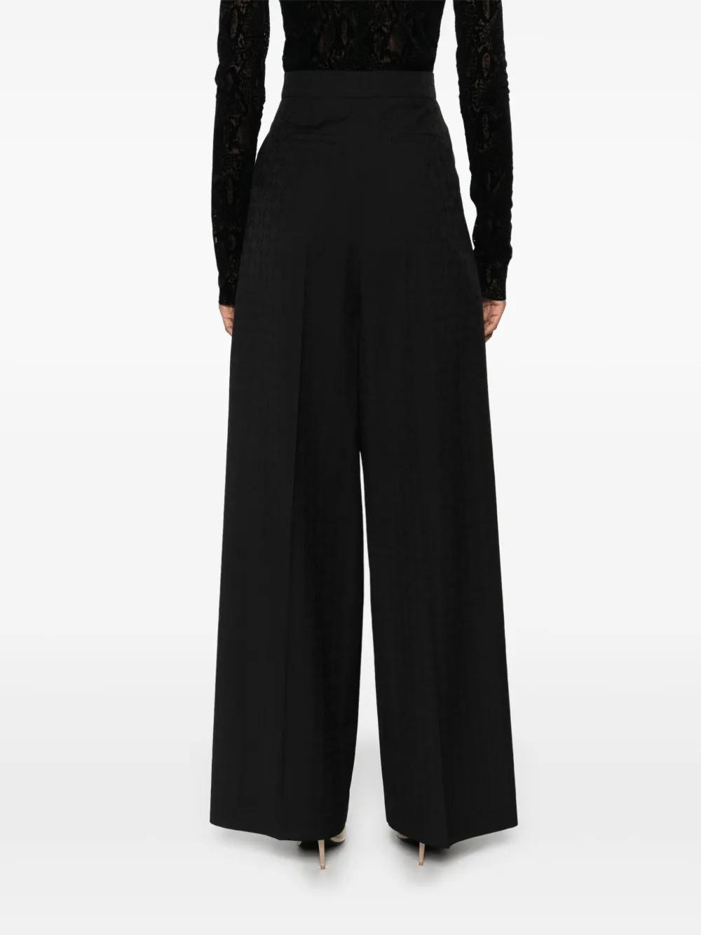 black concealed front button, hook and zip fastening two diagonal pockets to the sides two rear welt pockets pleat detailing