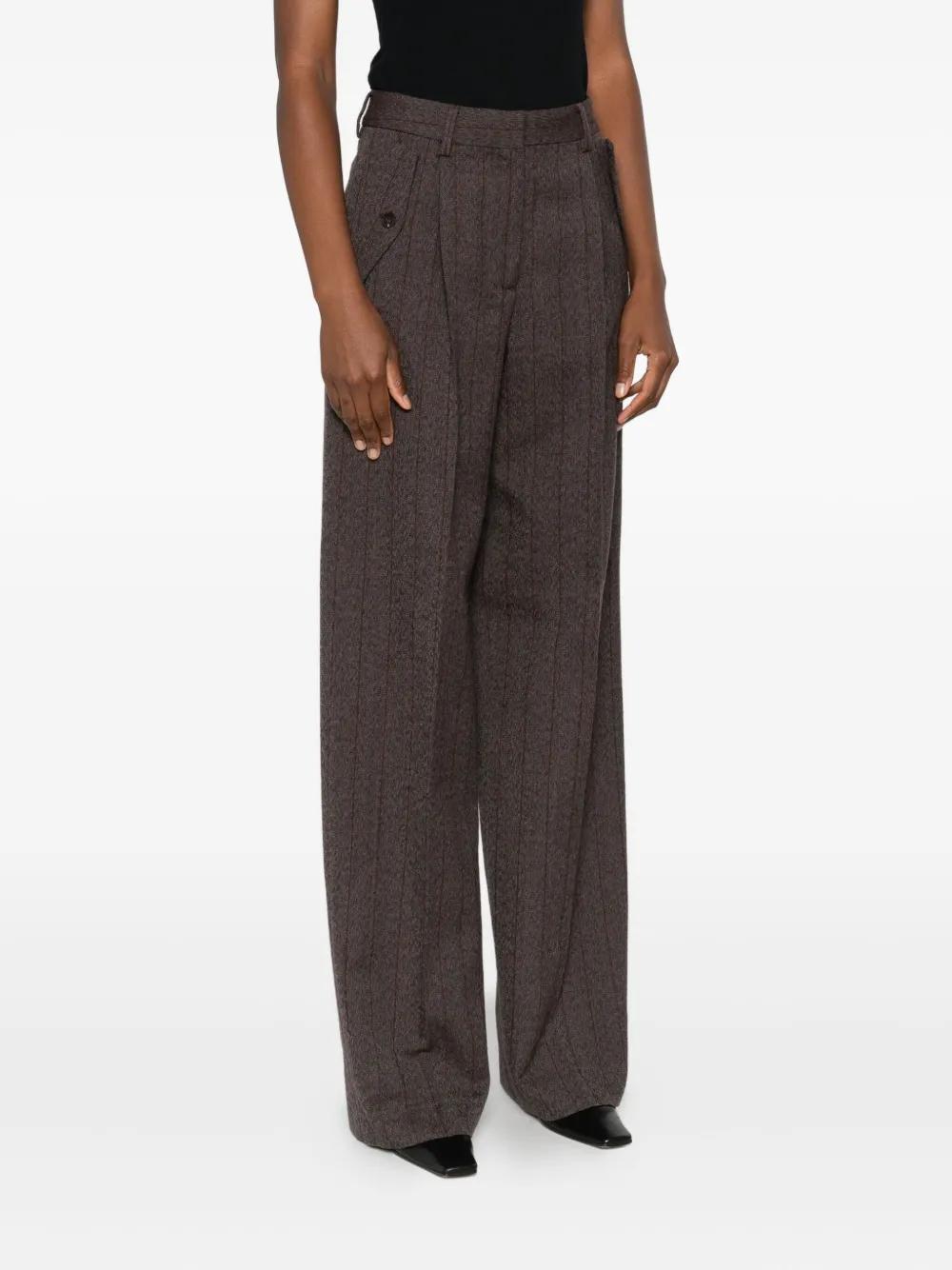 brown pinstripe pattern pleated front side flap-pockets virgin wool
