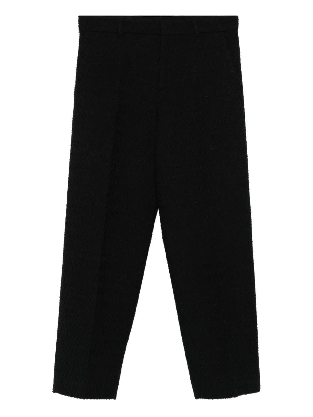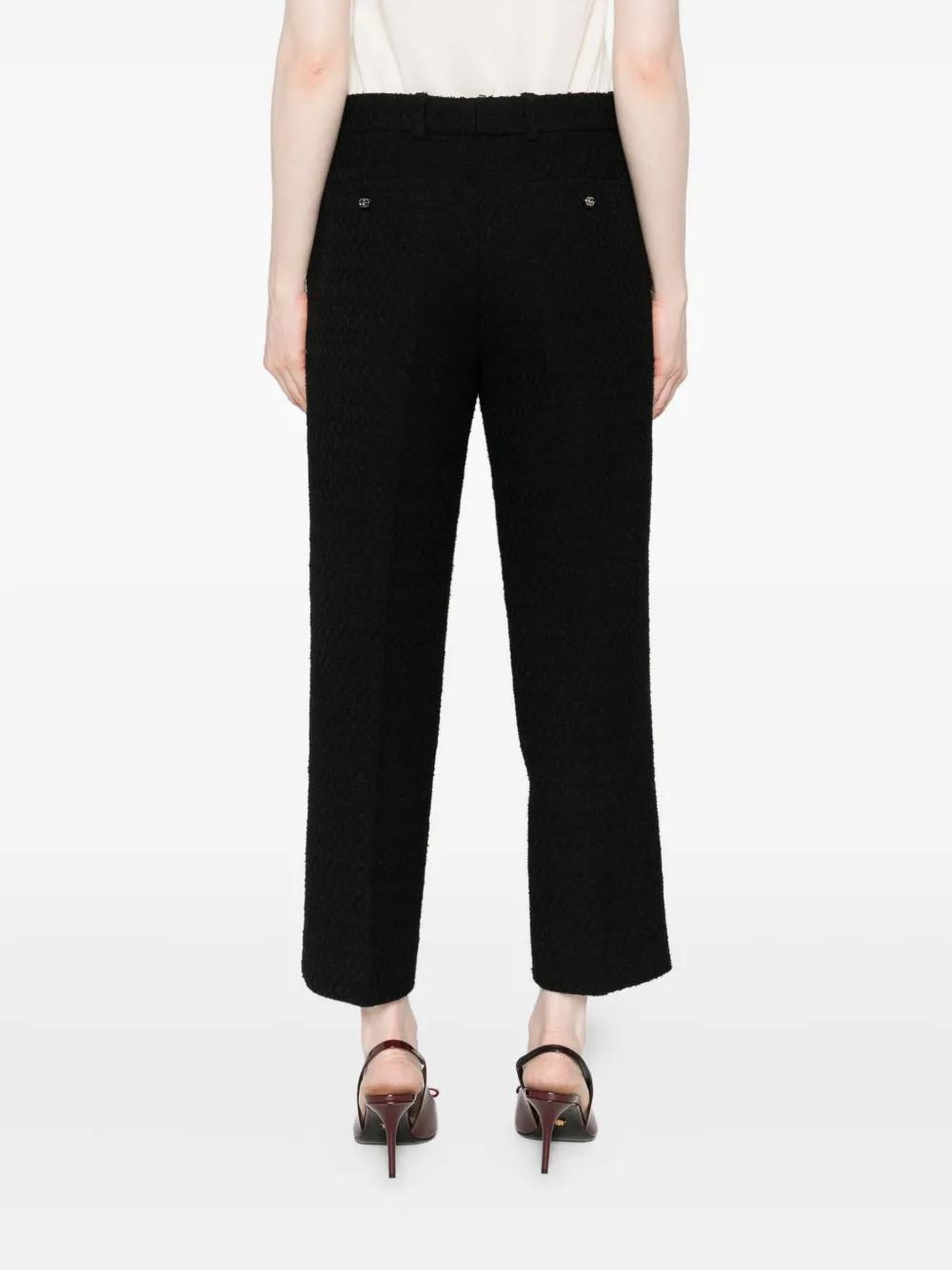 blue monogram print belted waist two side welt pockets slim cut elasticated ankles