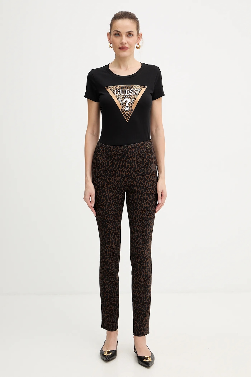 Guess spodnie CRETA damskie kolor brązowy fason cygaretki medium waist W5BB18 W2362