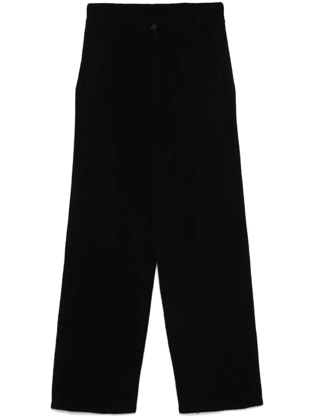 black cashmere blend ribbed knit brushed effect front button and zip fastening high-waisted belt loops faux pocket detail straight leg