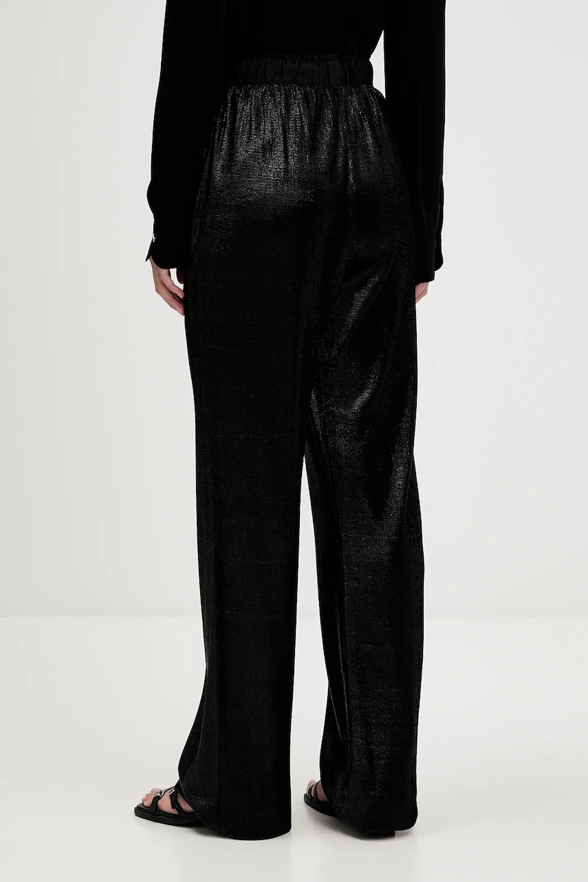 - Prosty, nie blokujący ruchów fason. - Podwyższony stan z elastyczną listwą w pasie. - Dwie wsuwane kieszenie boczne. - Szerokość w pasie: 33 cm. - Szerokość w biodrach: 53 cm. - Wysokość stanu: 37 cm. - Szerokość nogawki na dole: 24 cm. - Szerokość nogawki: 27 cm. - Długość wewnętrzna nogawki: 92 cm. - Wymiary podane dla rozmiaru: 36.