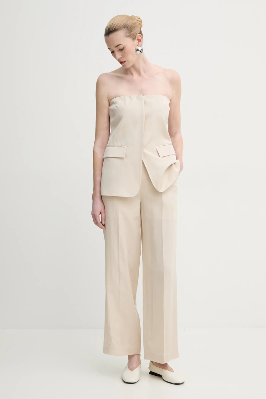 ISABELLE BLANCHE spodnie damskie kolor beżowy szerokie high waist IS25SS-P052-T004