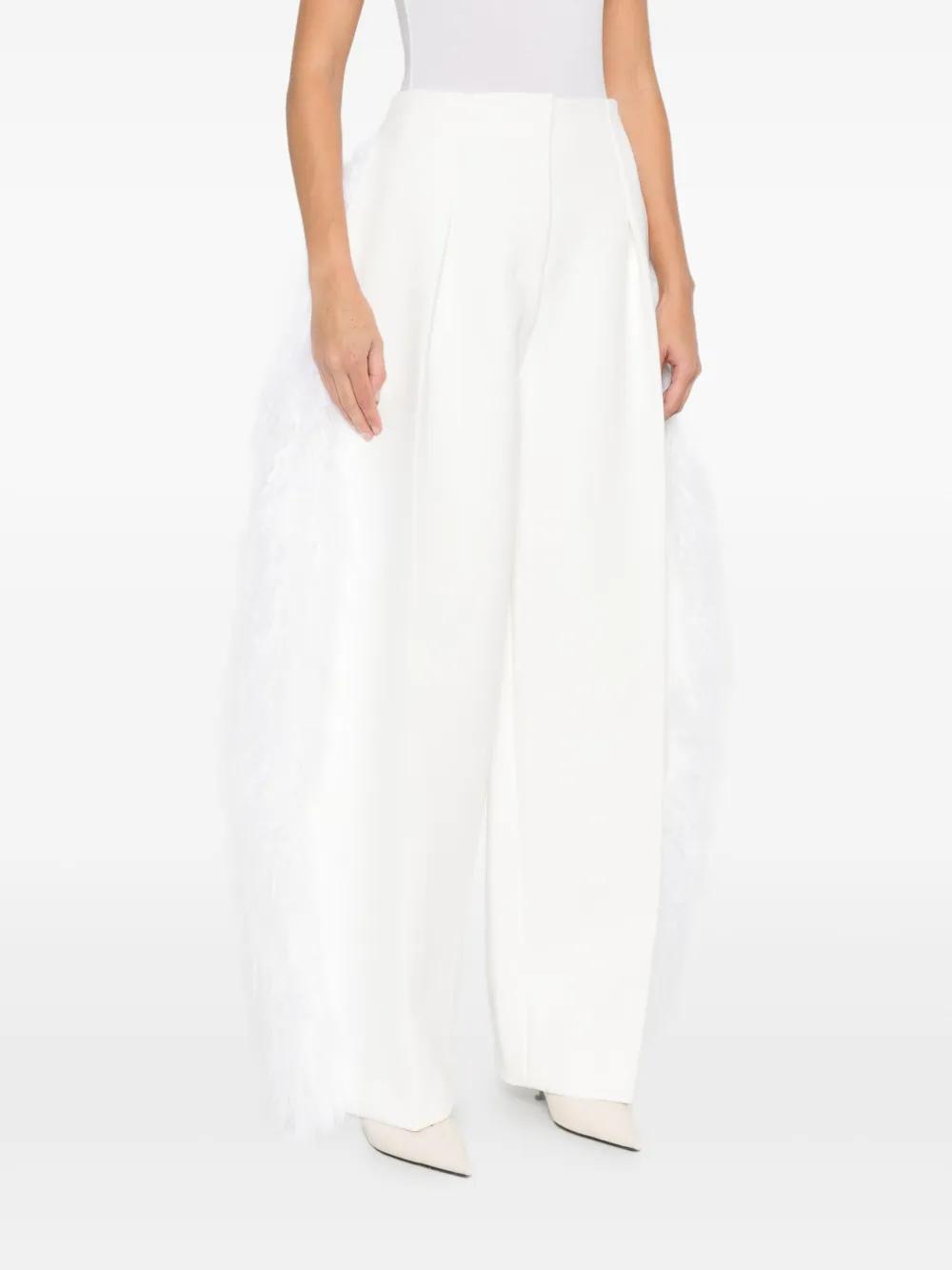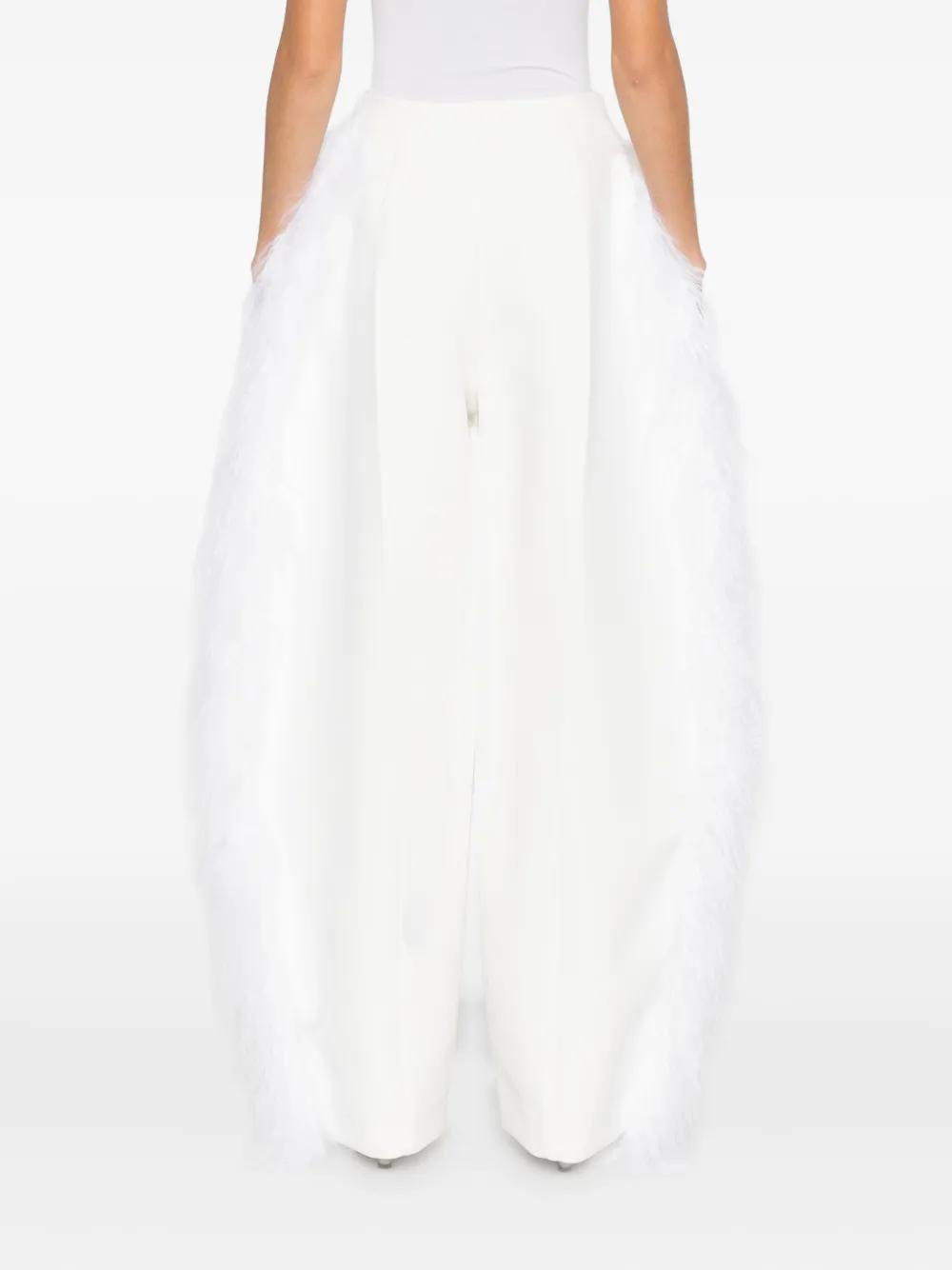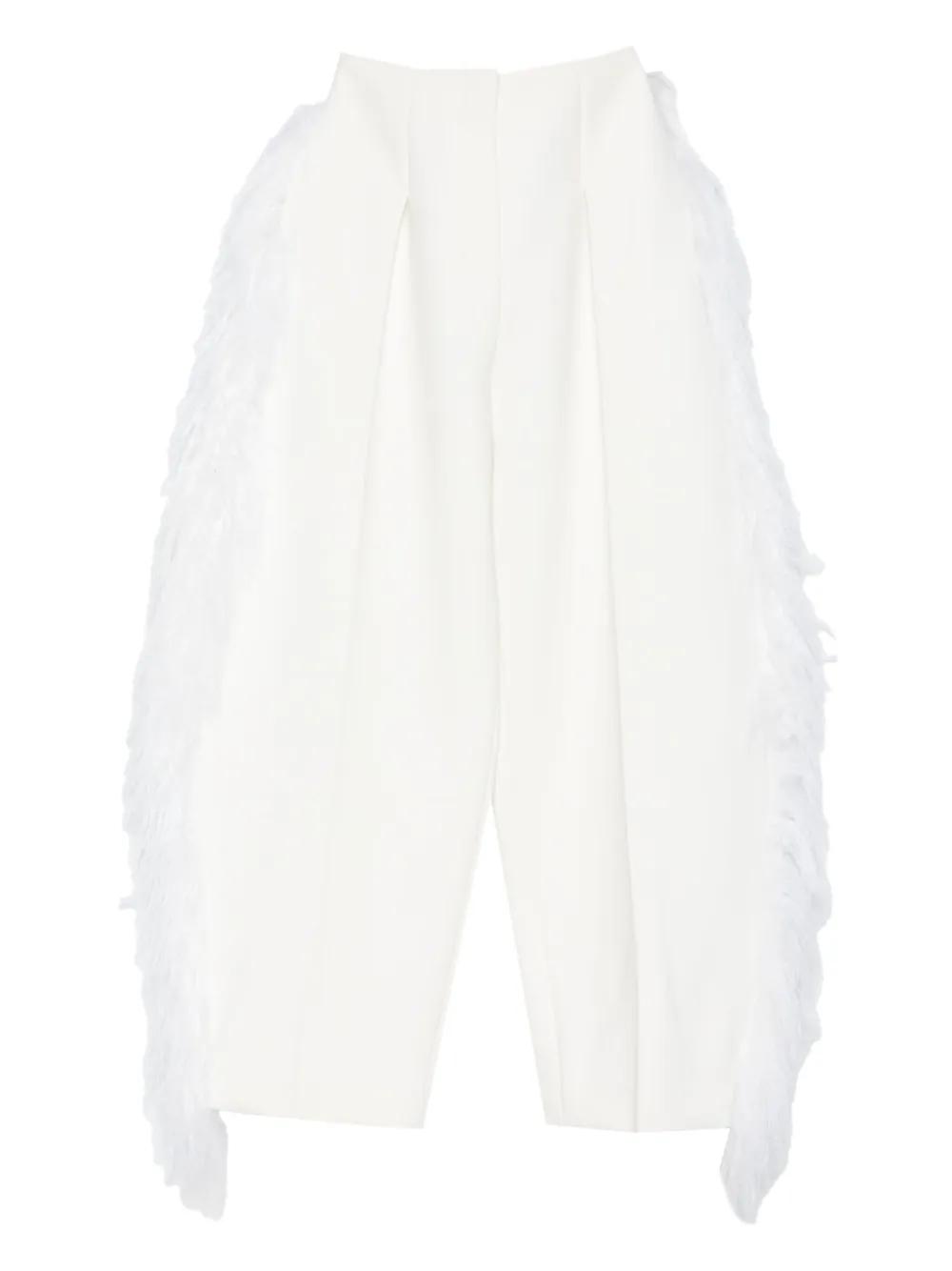 white feather trim pleat detail concealed fastening straight leg mid-rise