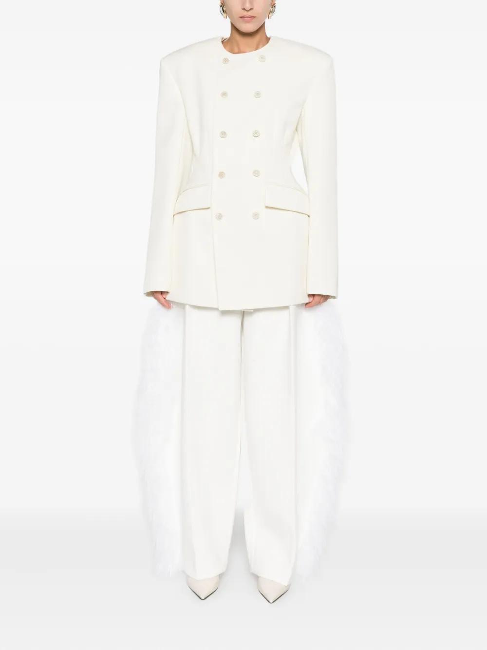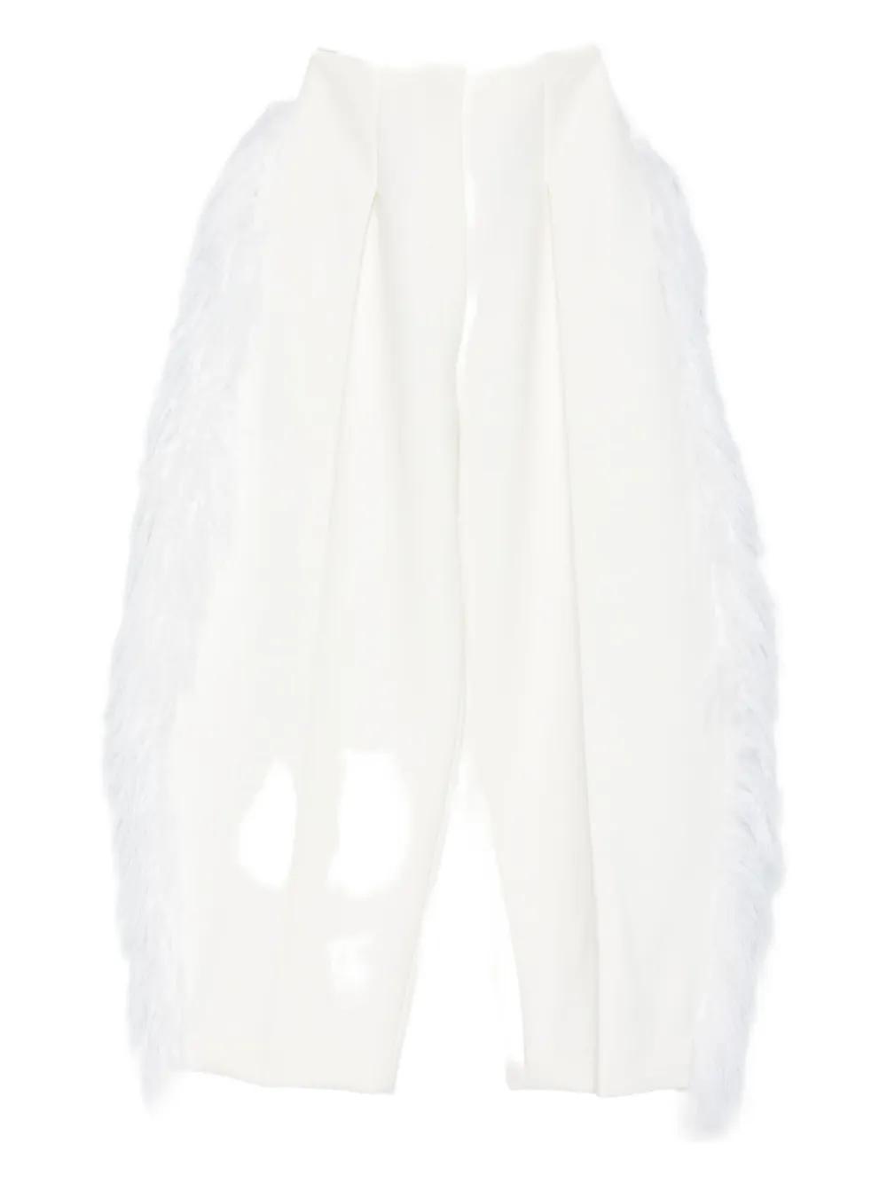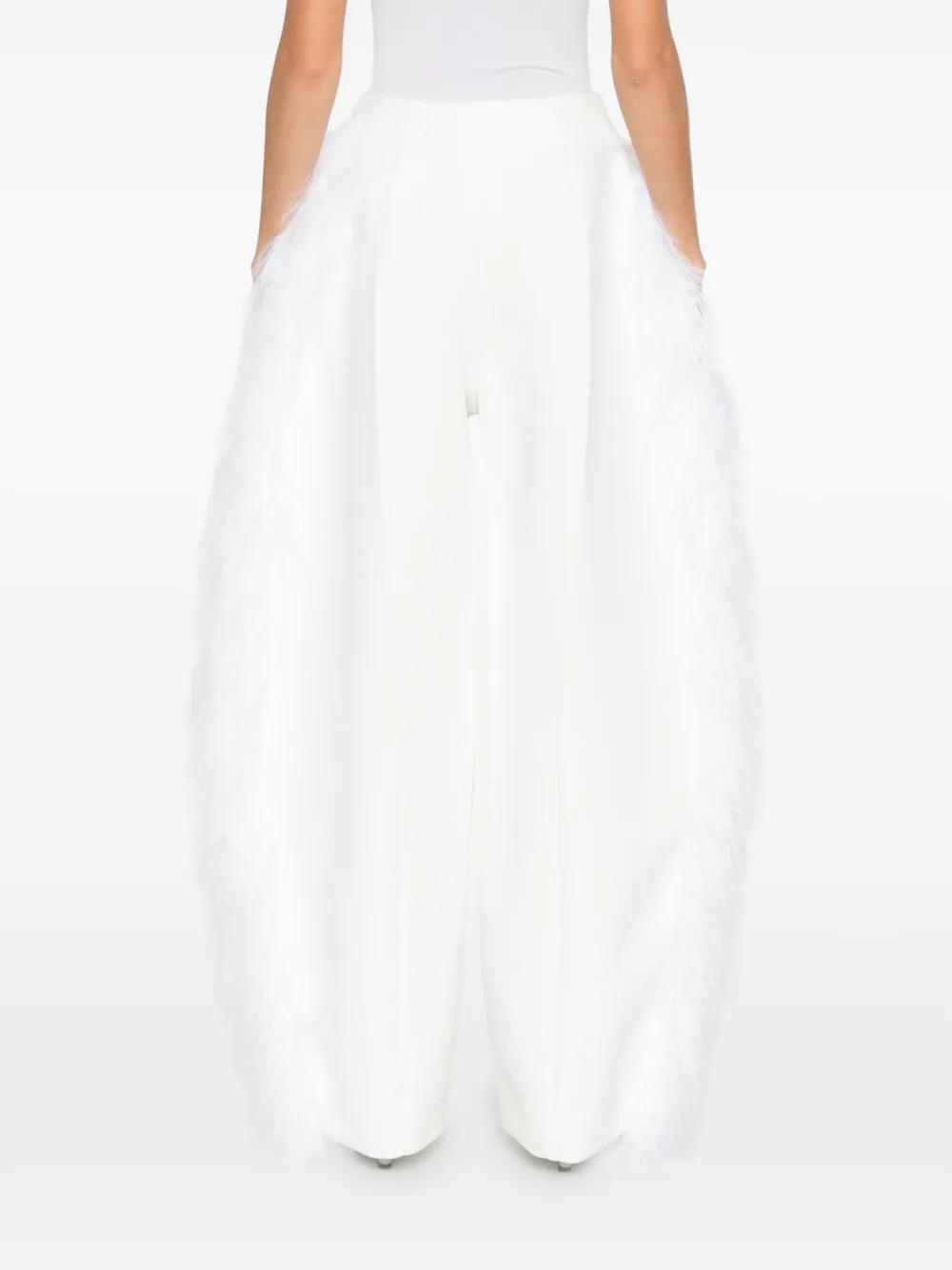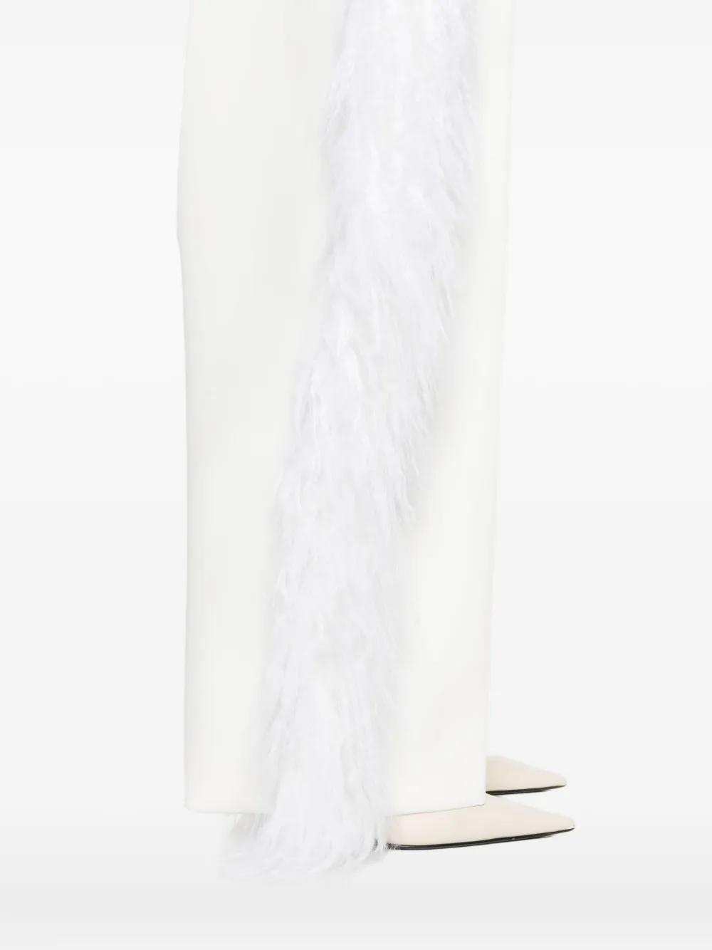white feather trim pleat detail concealed fastening straight leg mid-rise