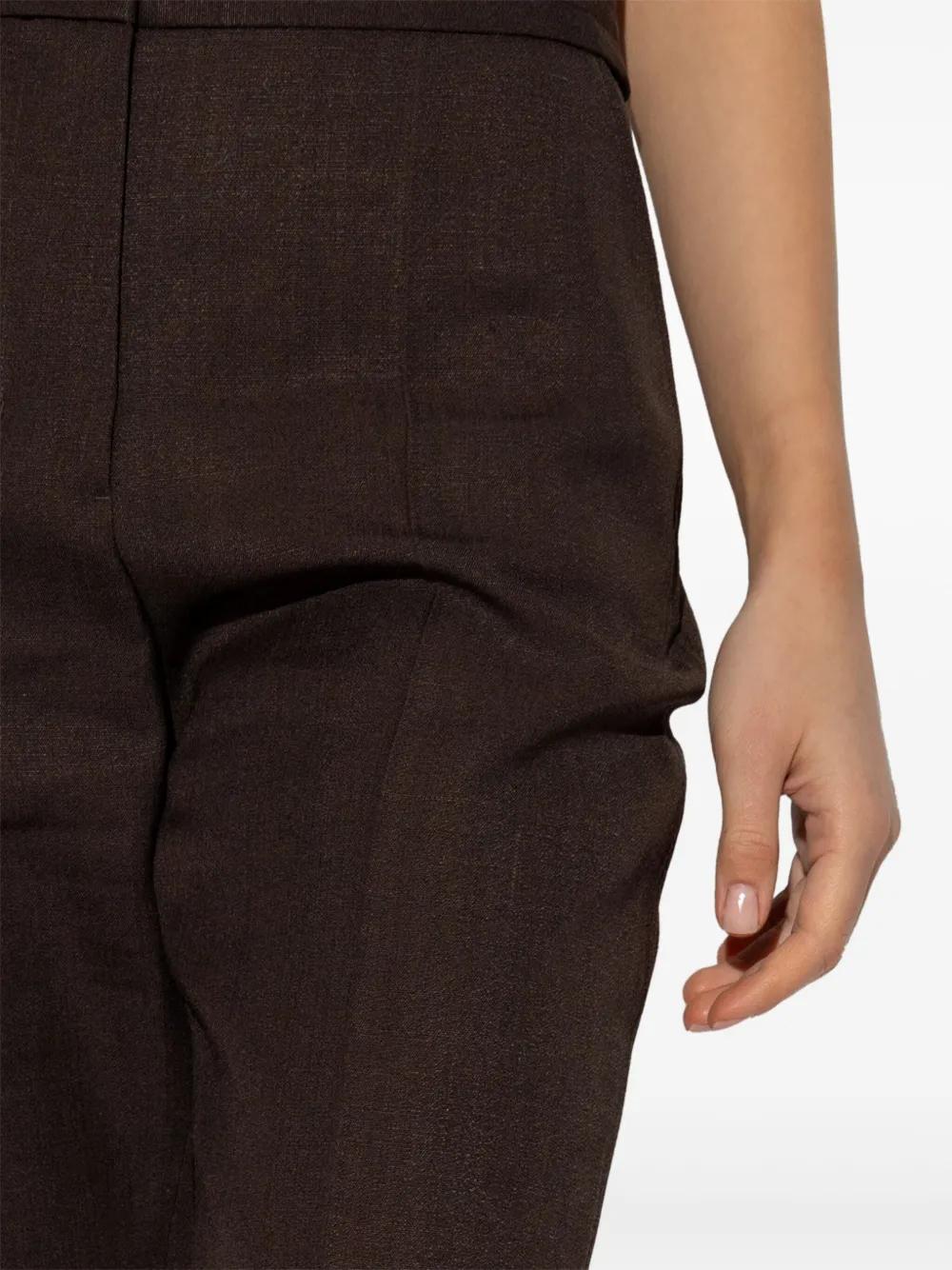 brown concealed front fastening two side inset pockets two rear welt pockets high-waisted
