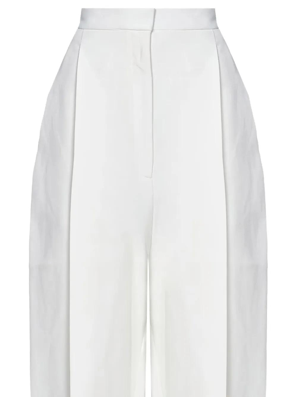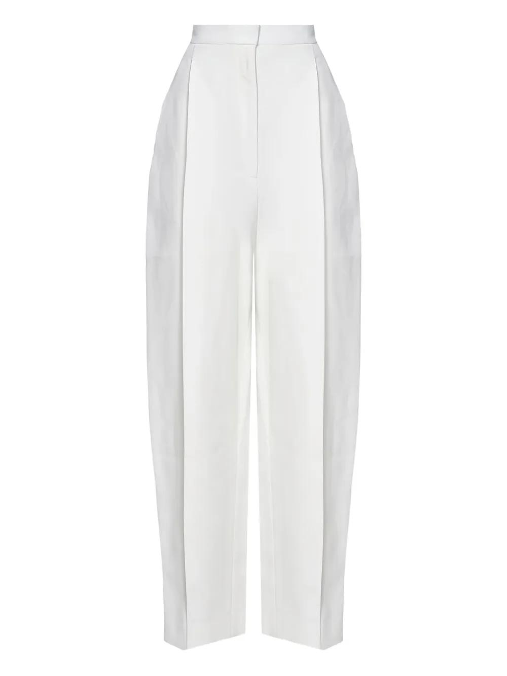 white pleat detail high-waisted concealed front fastening rear welt pockets