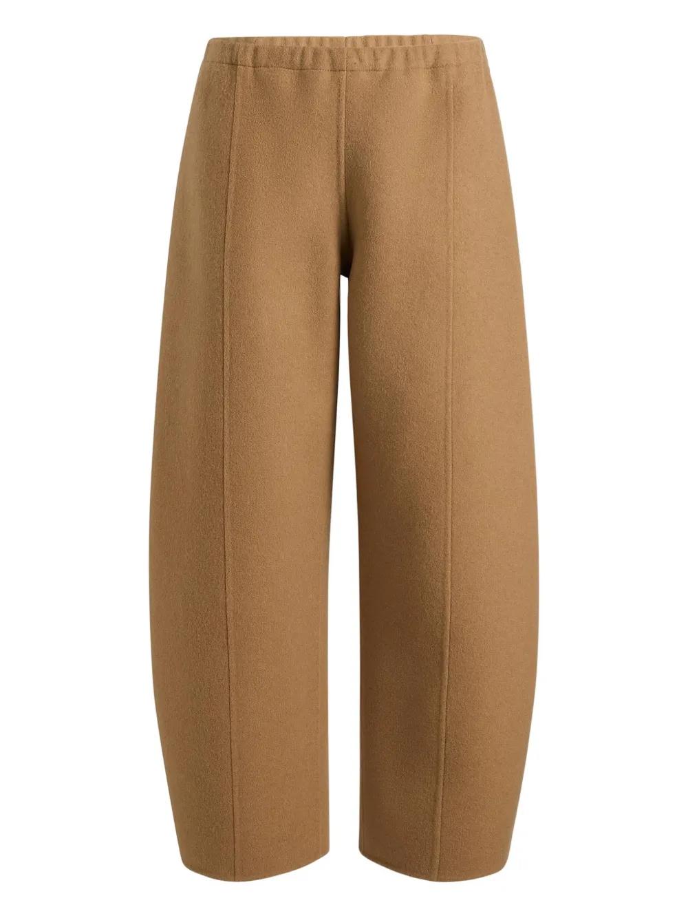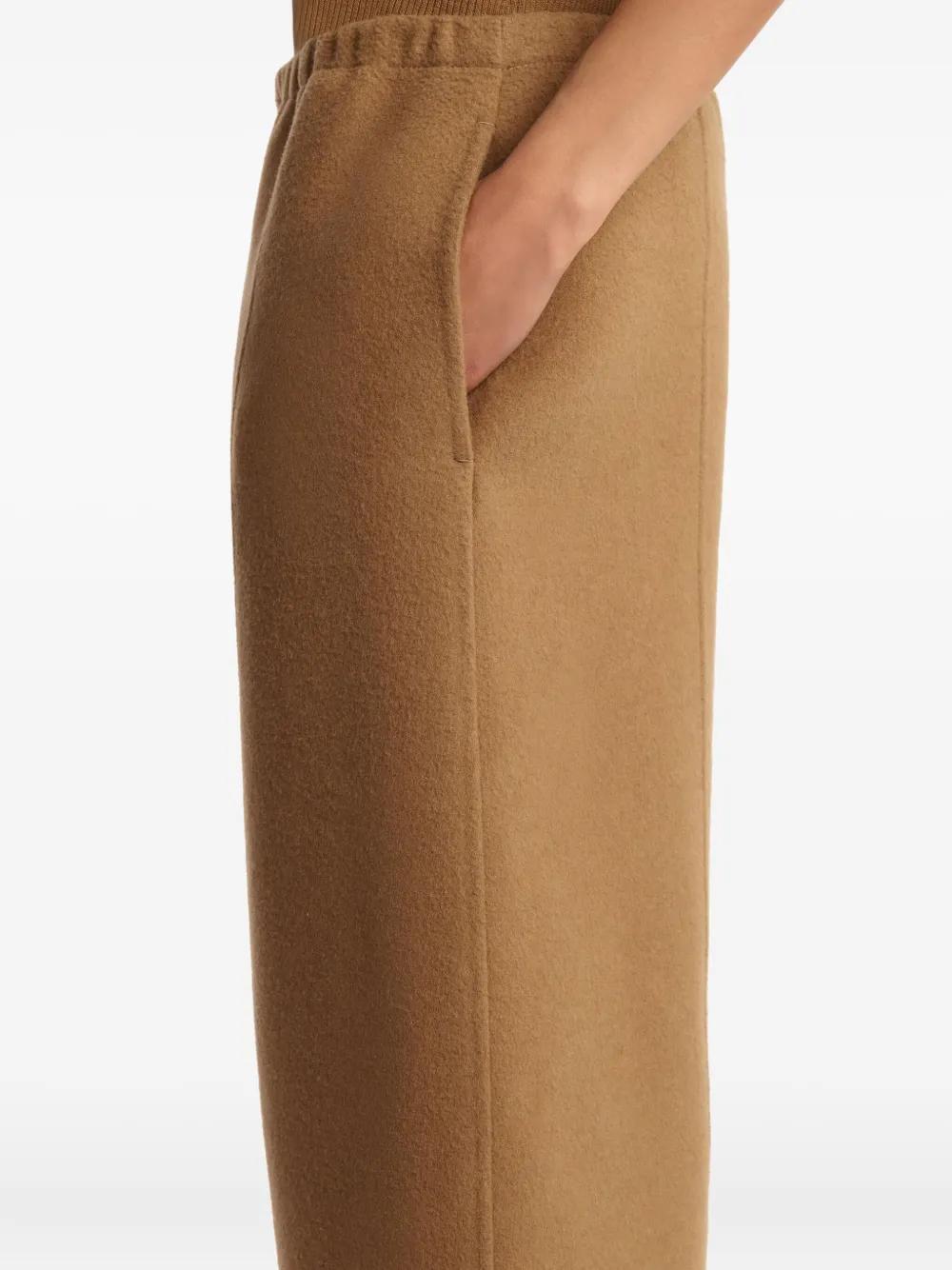 camel elasticated waistband side seam detail side slip pockets crafted from merino wool
