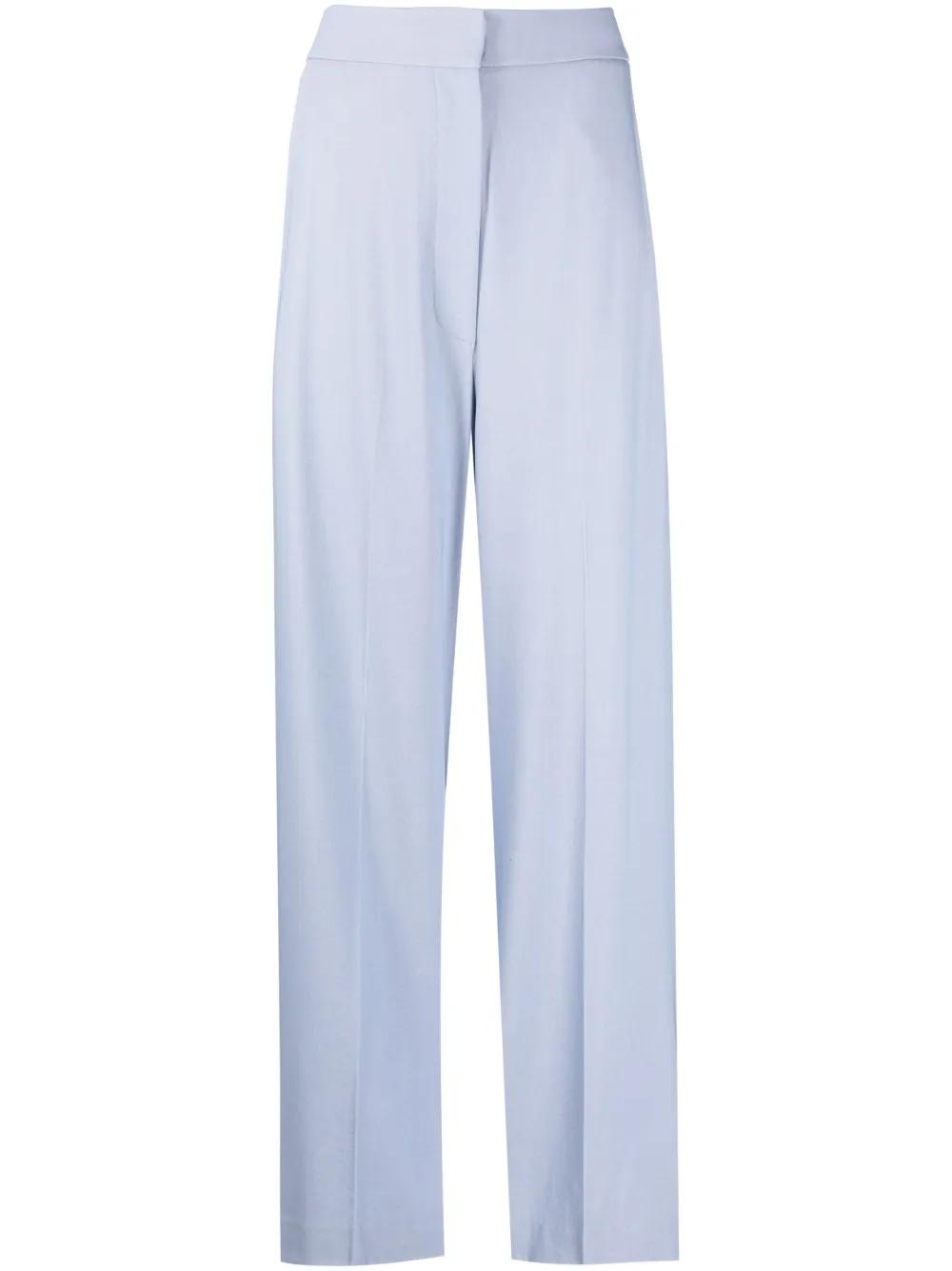 lilac purple virgin wool blend high waist concealed front fastening two side slit pockets wide leg