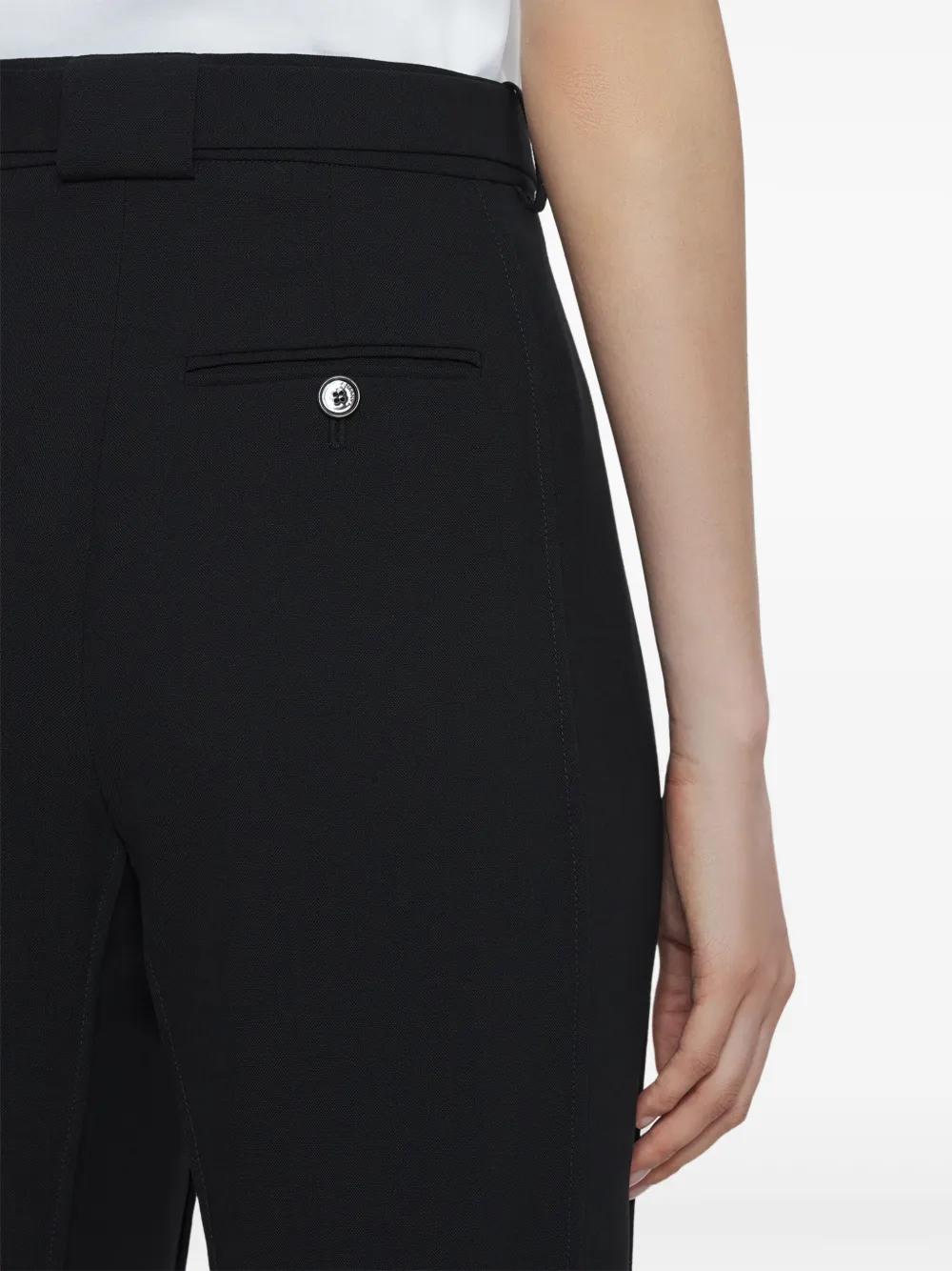 black concealed front fastening two side inset pockets rear button-fastening jetted pocket