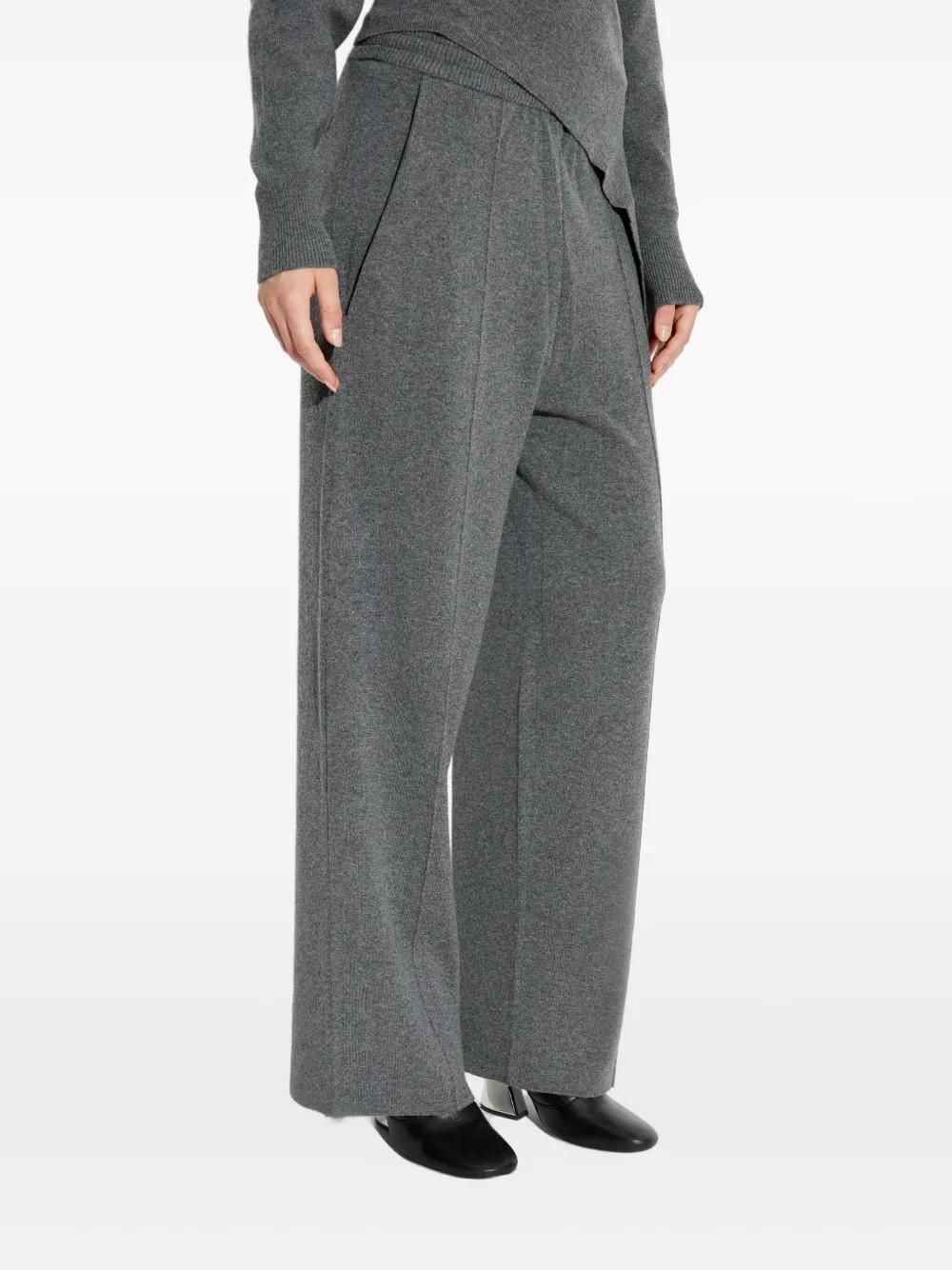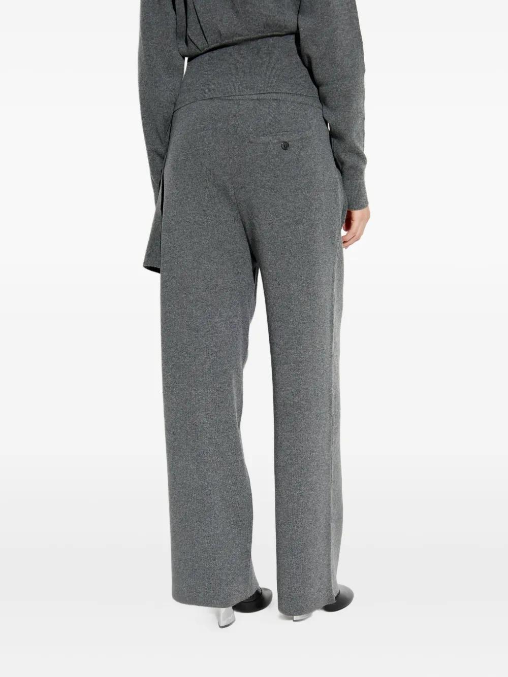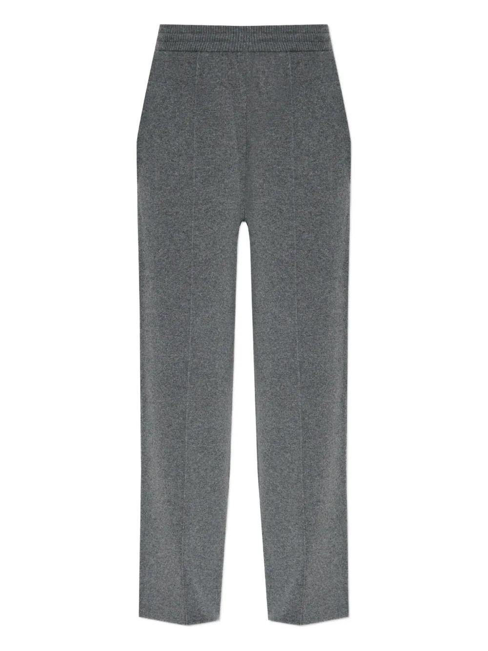 grey elastic waistband side seams buttoned pocket straight leg mid-rise waist