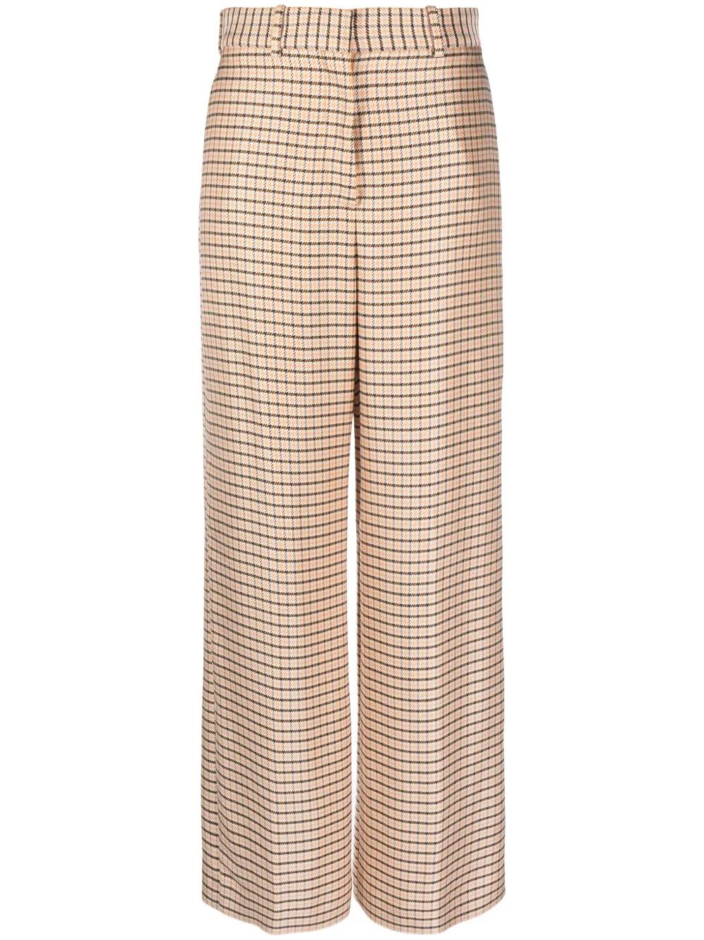 orange/black cotton check pattern high-waisted belt loops concealed front fastening wide leg two side slit pockets