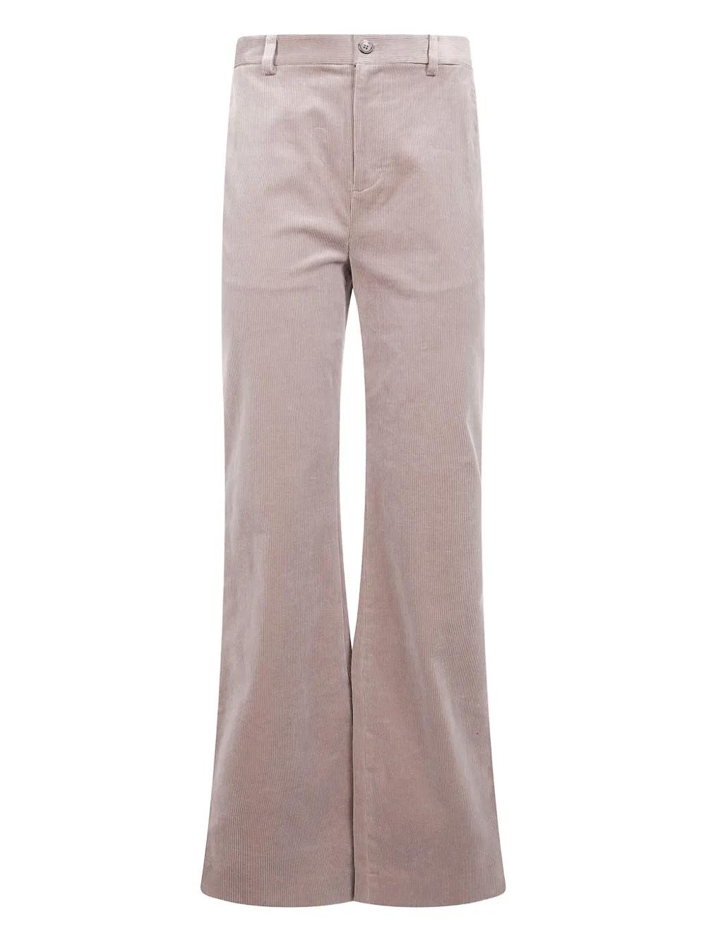 taupe beige corduroy texture belt loops back jetted pockets flared leg