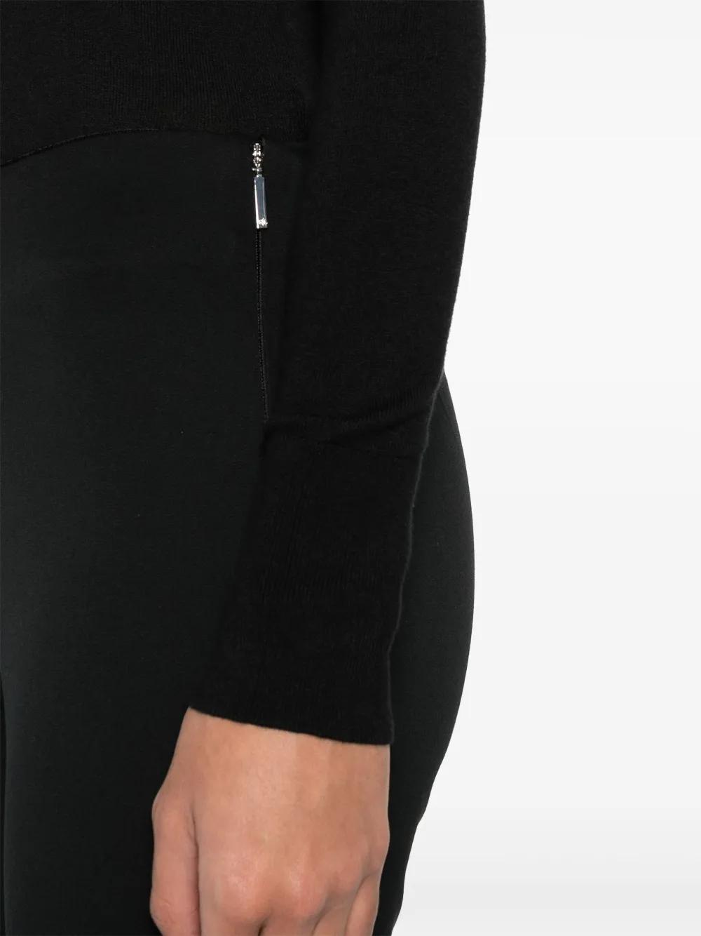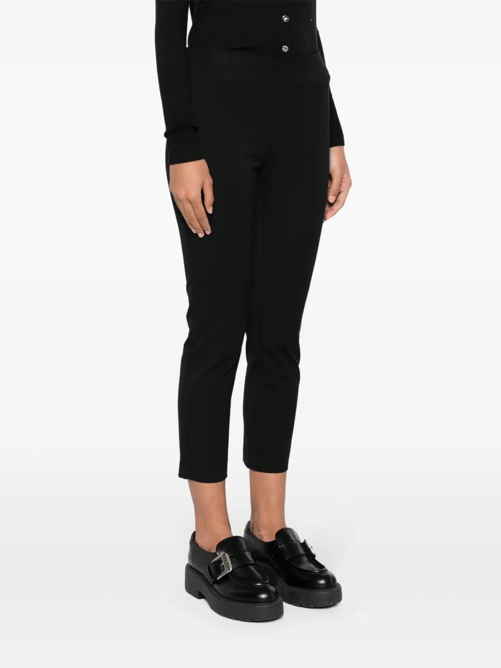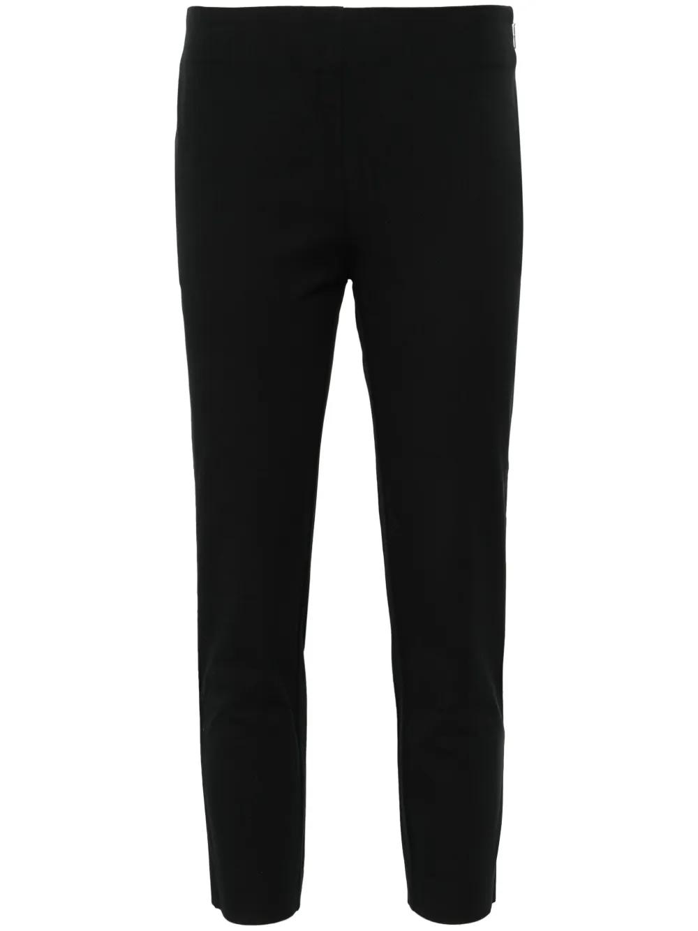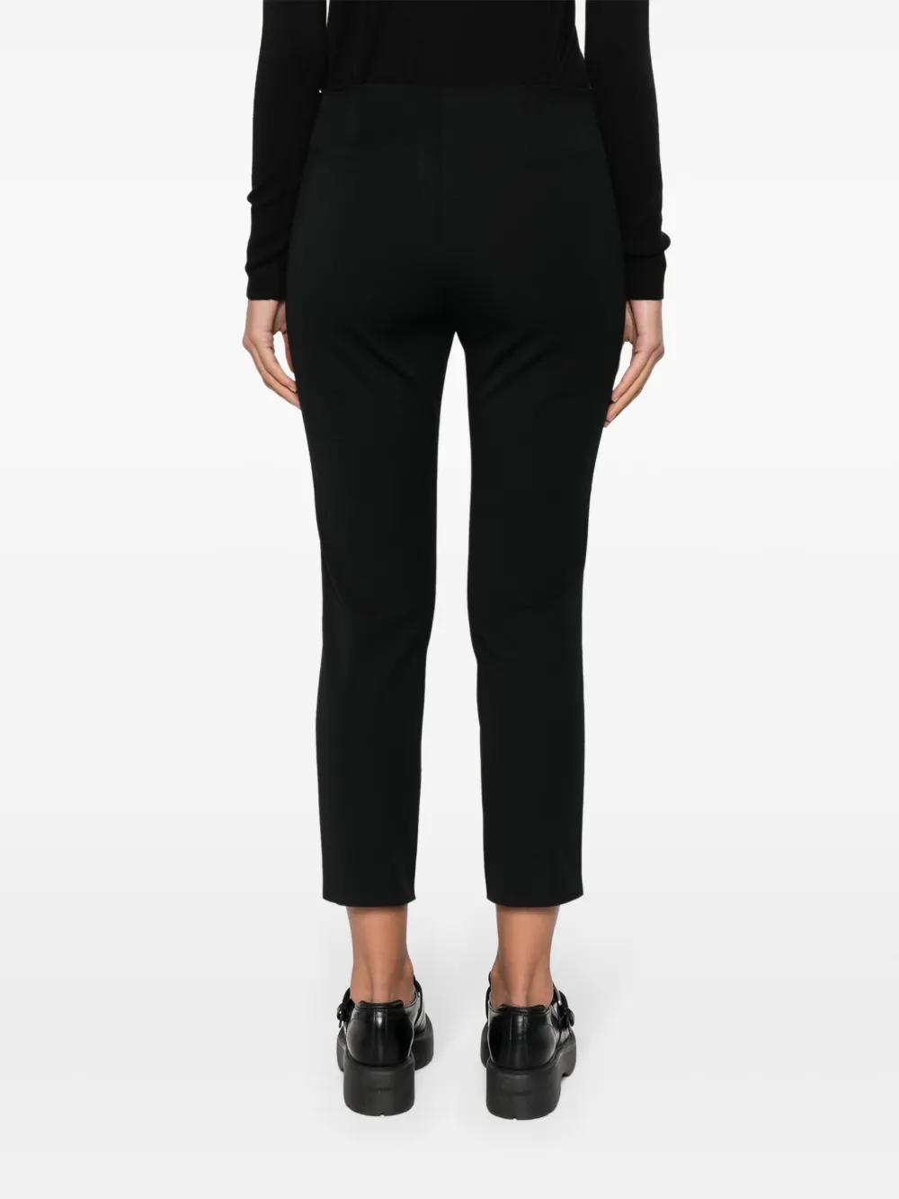 black cotton blend twill weave dart detailing slim cut cropped leg concealed side hook and zip fastening