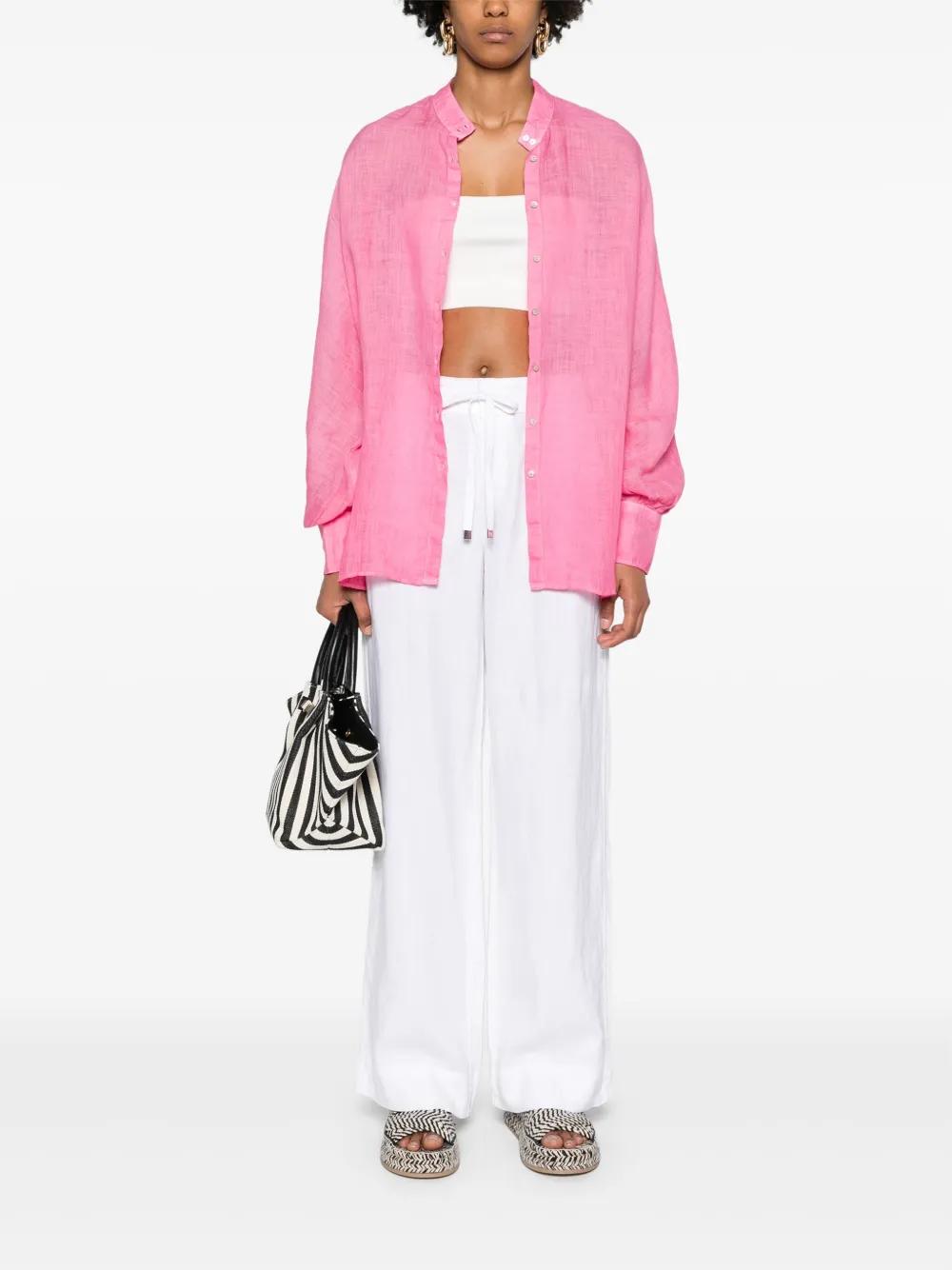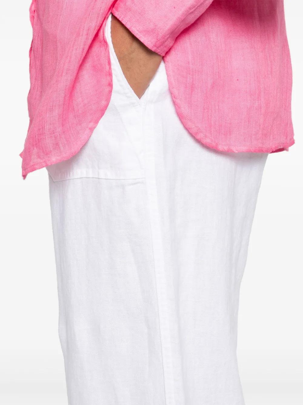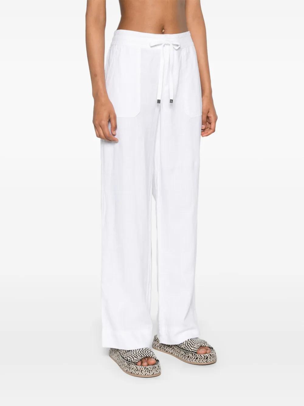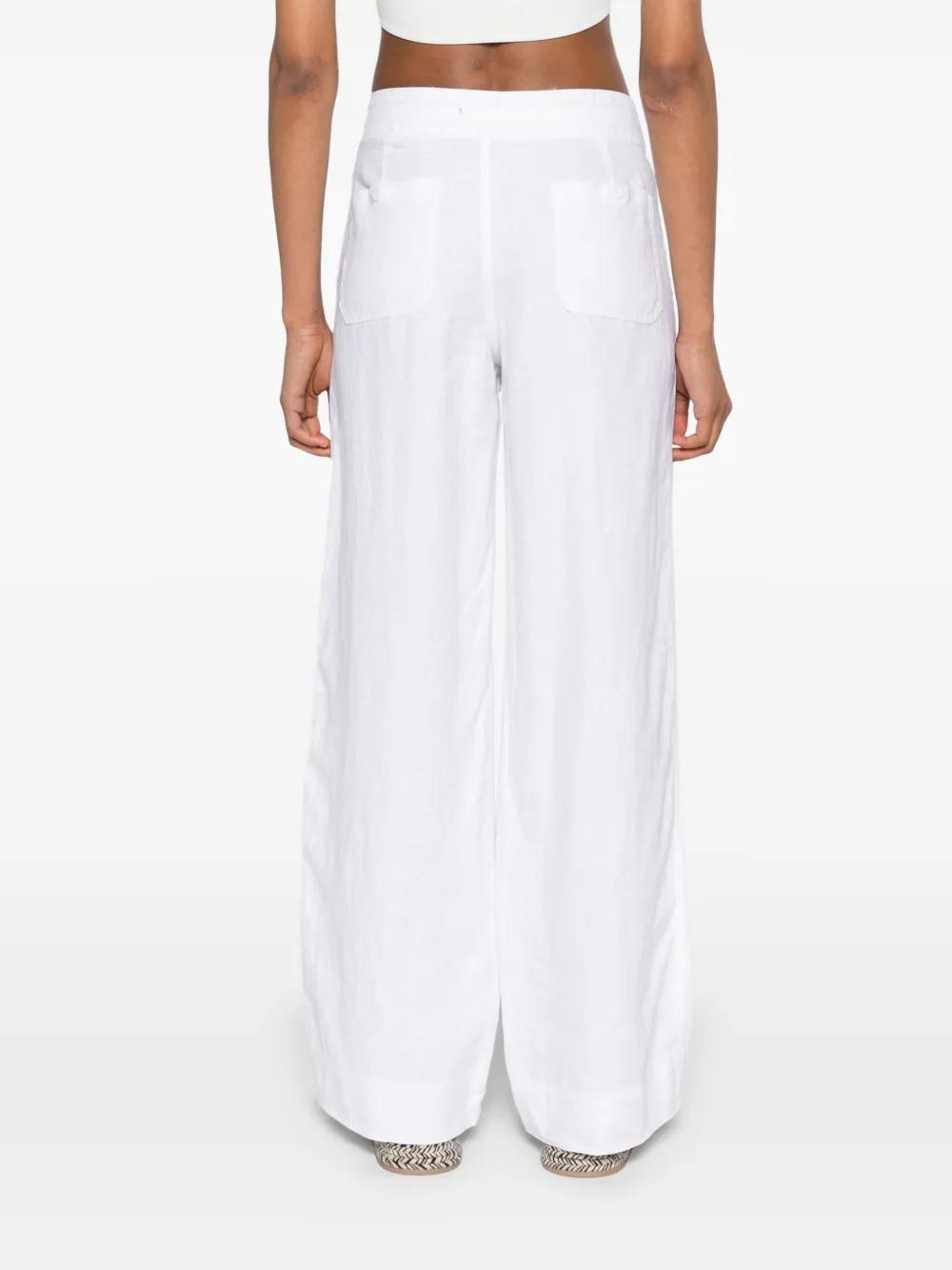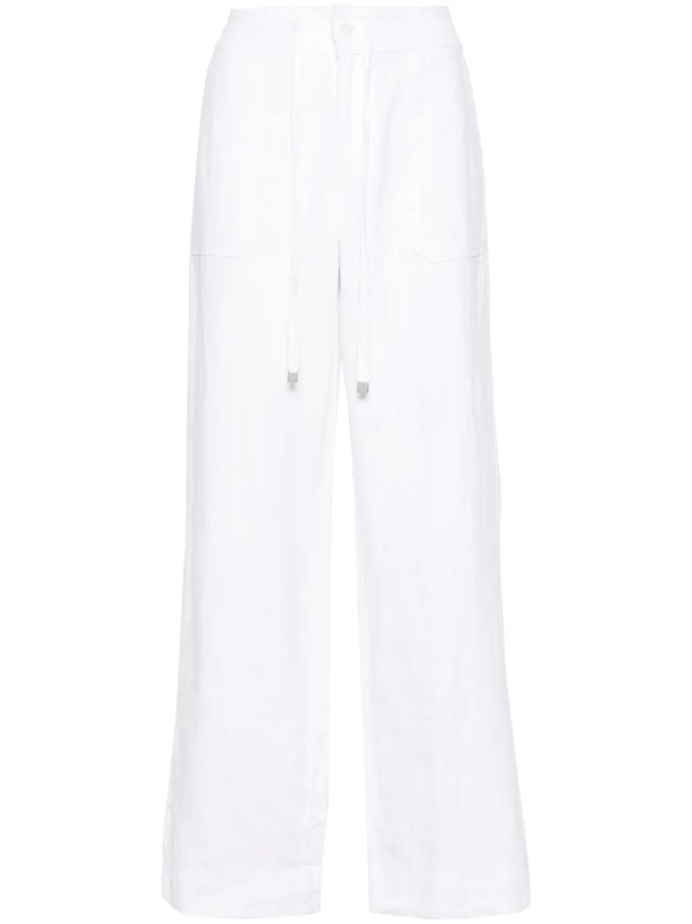 white linen/flax interlock twill weave mid-rise internal drawstring fastening waist front button and zip fastening two side slash pockets two rear button-fastening pockets straight leg