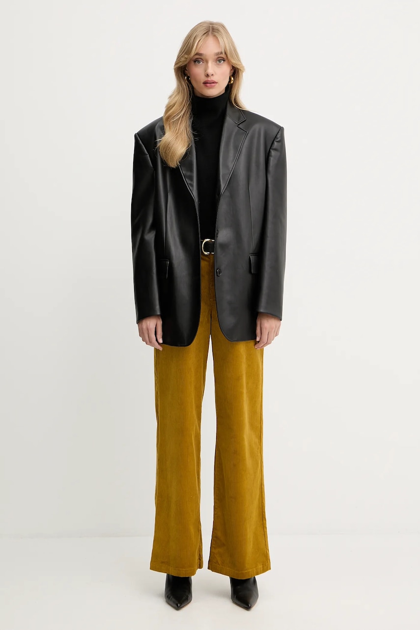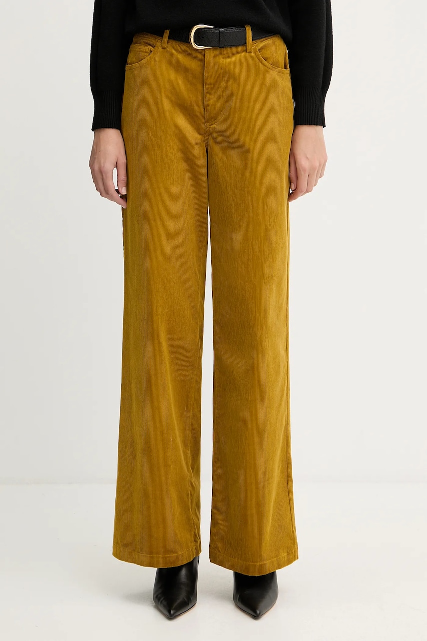 Liu Jo spodnie sztruksowe damskie kolor żółty szerokie high waist MF5274 T192A