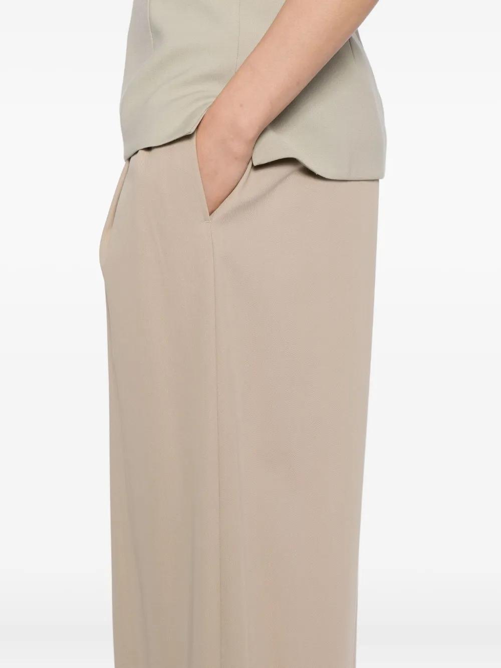 taupe front button and zip fastening two side inset pockets rear jetted pocket turn-up hem
