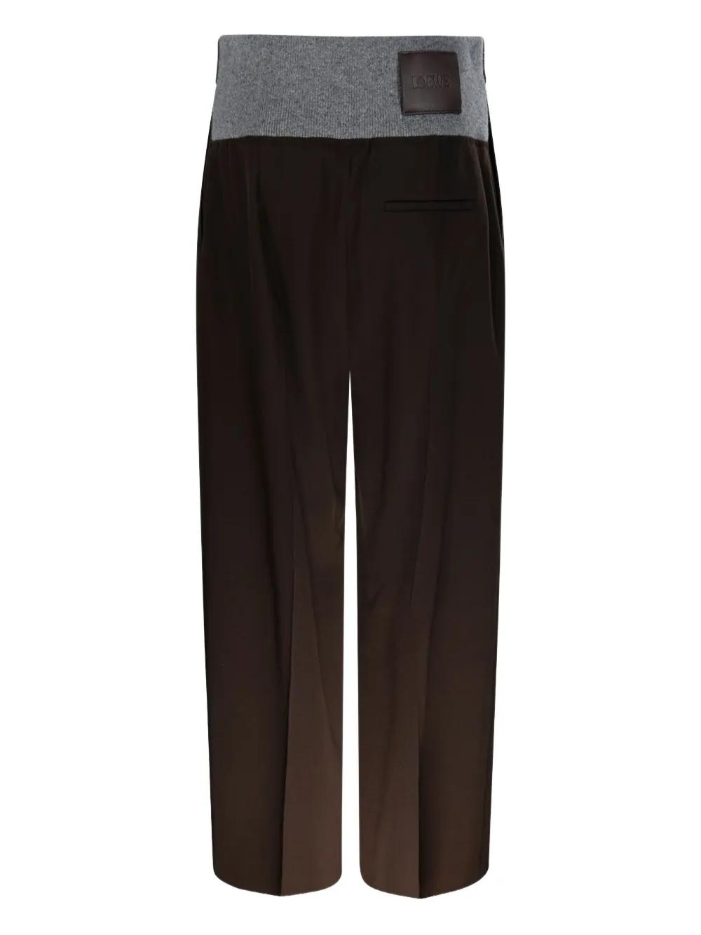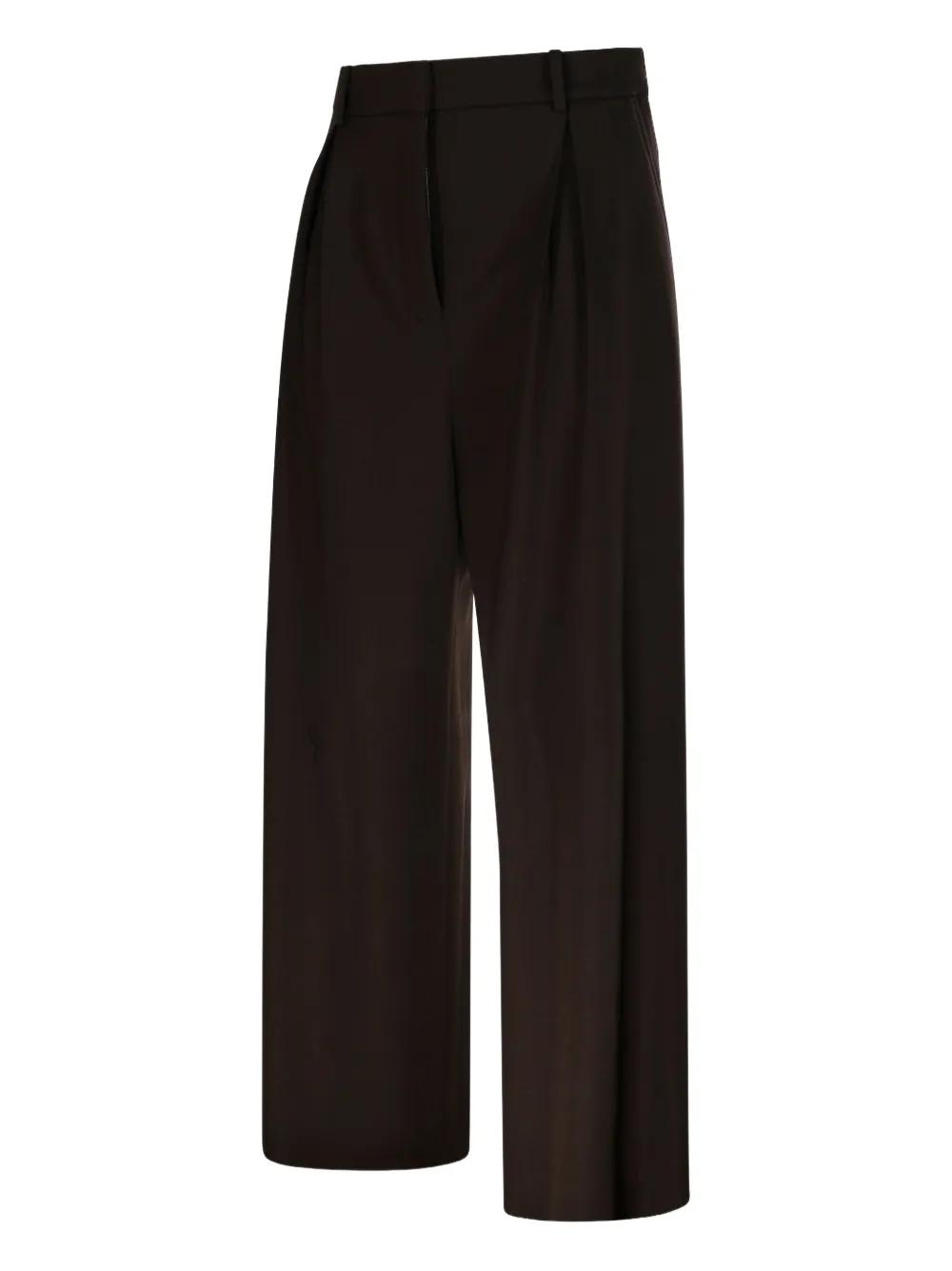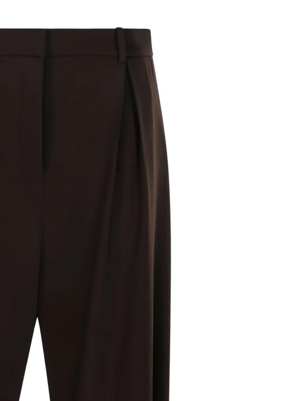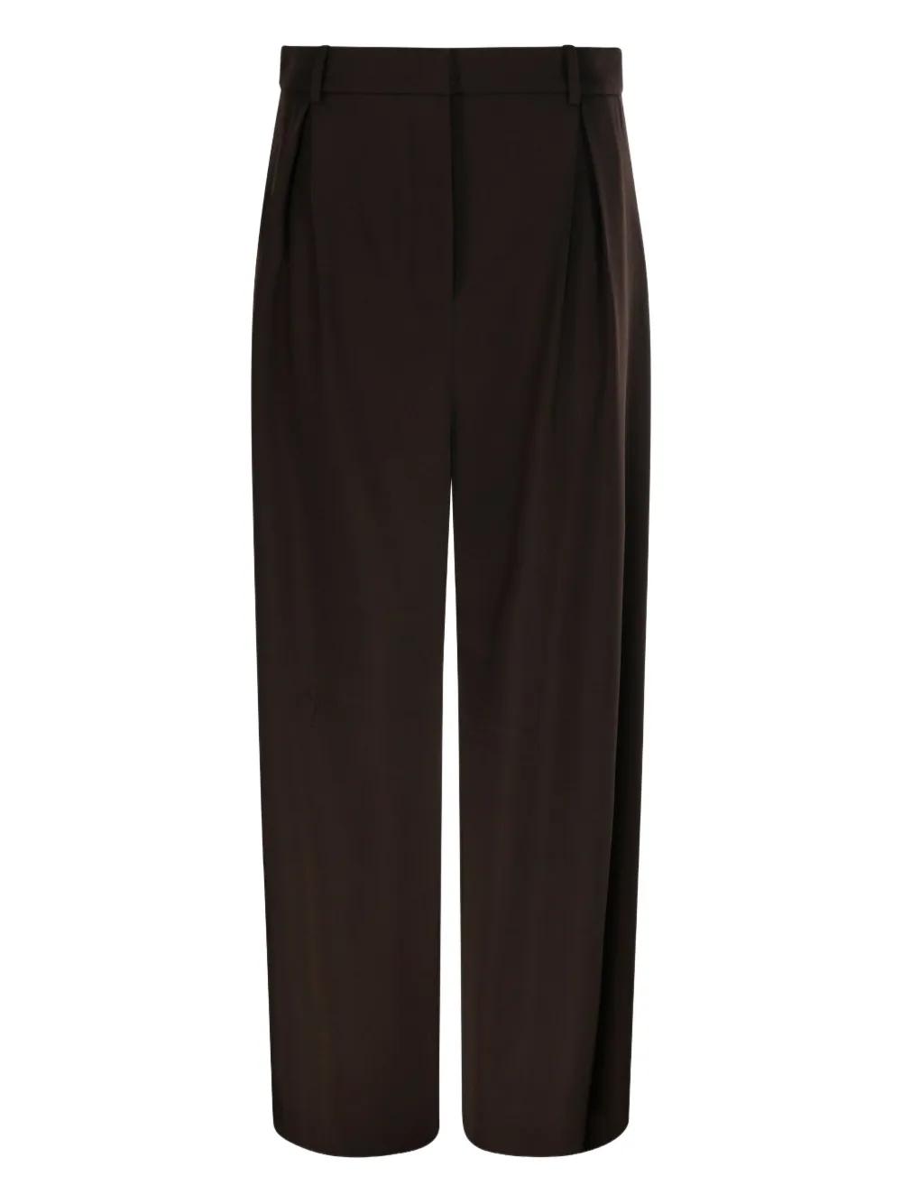 brown pleated details high waist straight leg concealed hook and fly fastening