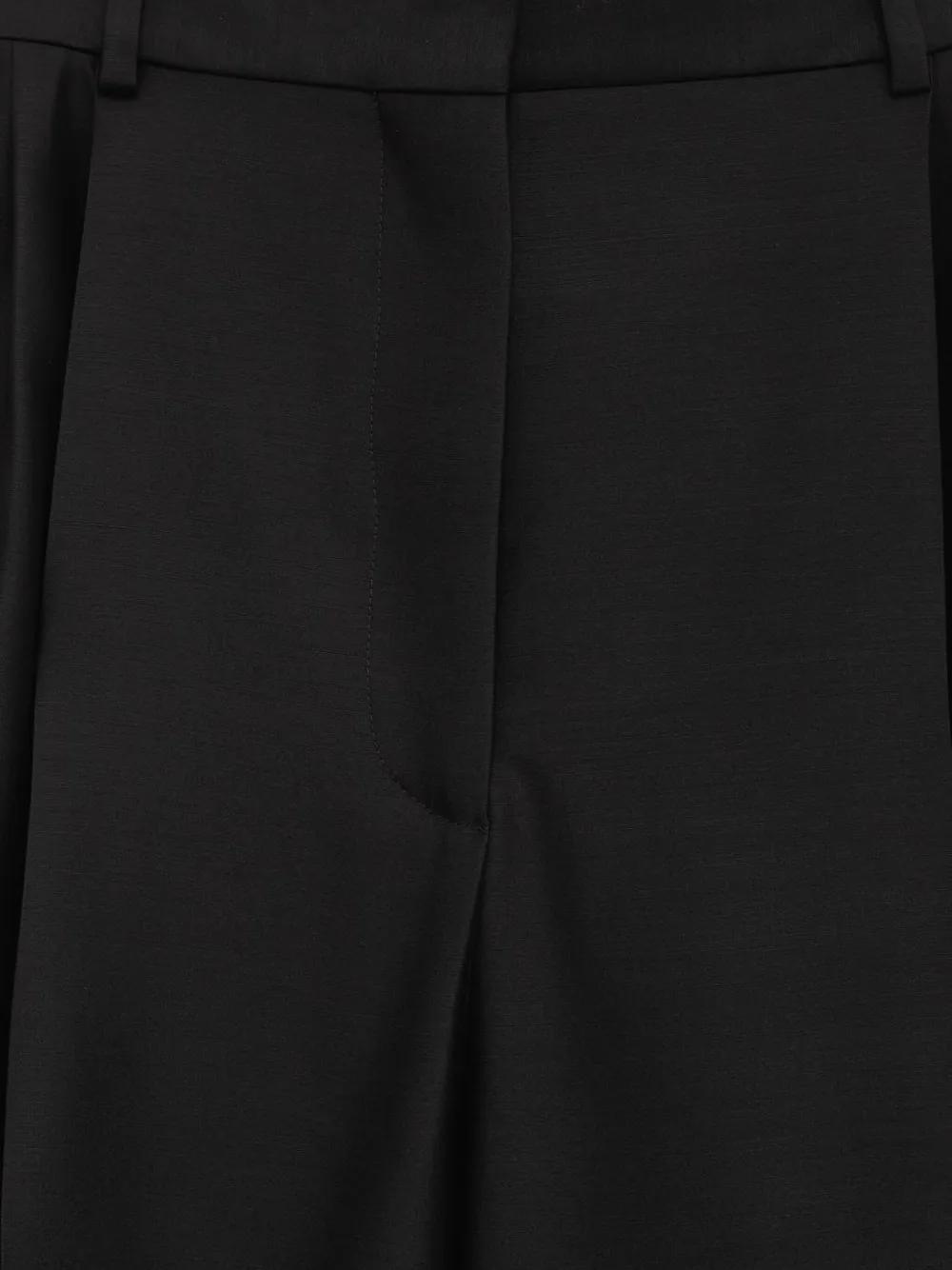 black pleated front cuffed hem centre-front fastening high waist