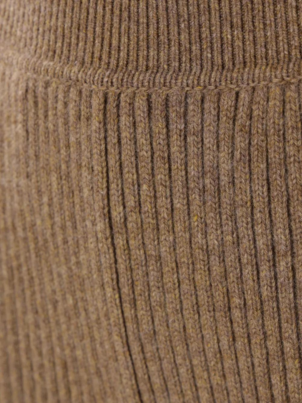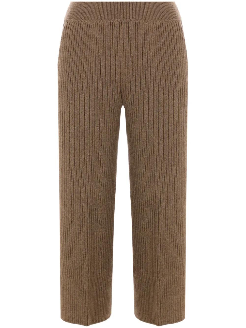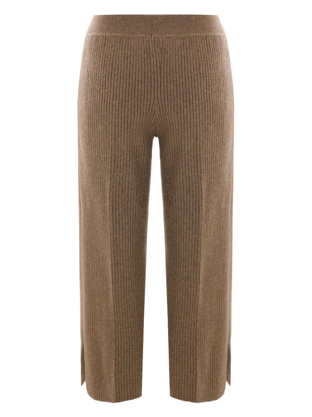 brown cashmere knitted construction ribbed waistband elasticated waistband two side inset pockets cropped leg
