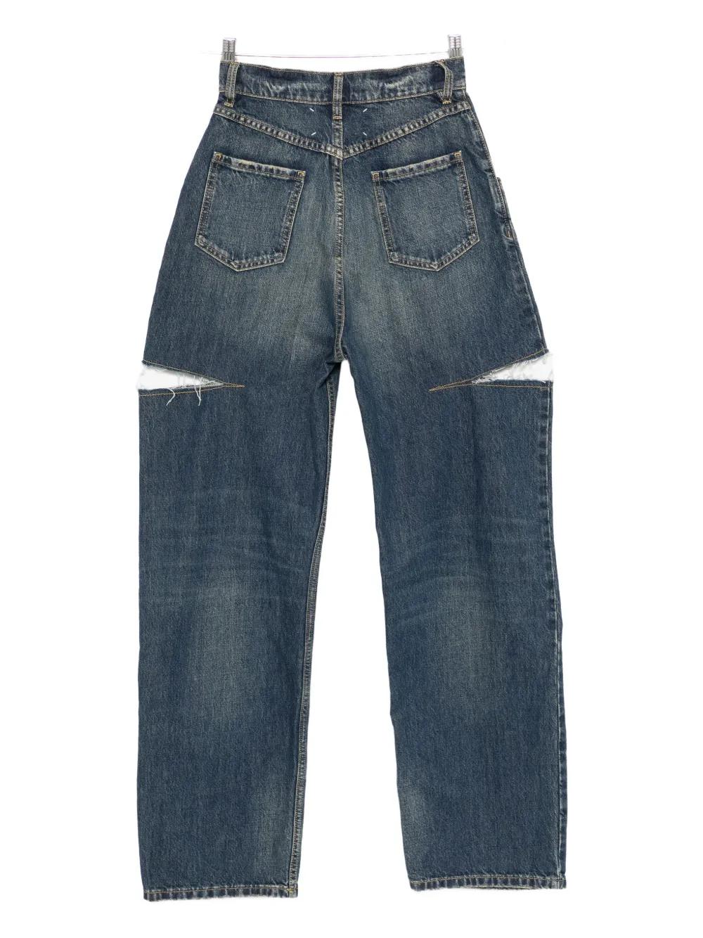 blue cut-out detailing classic five pockets belt loops button and fly fastening