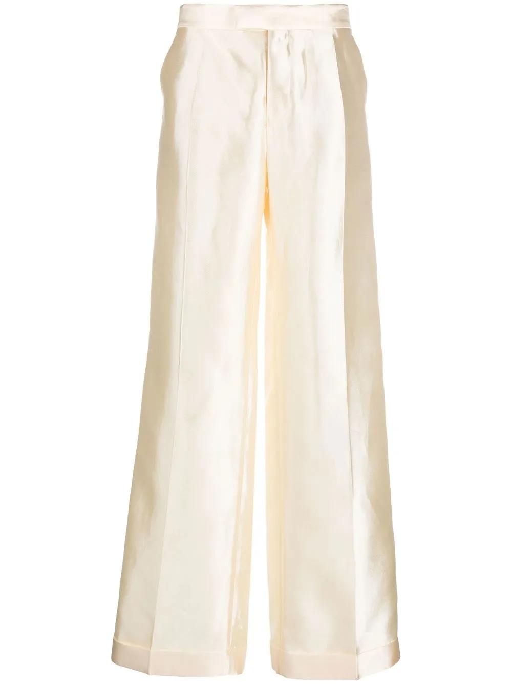 ivory white cotton-silk blend front button and zip fastening straight leg dart detailing