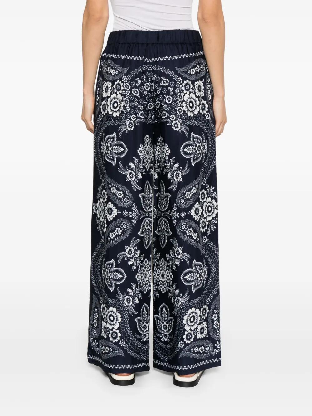 navy blue elasticated waistband bandana print wide leg