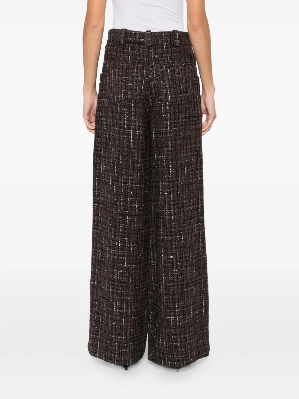brown plaid pattern metallic thread detailing side pockets rear patch pockets concealed front fastening