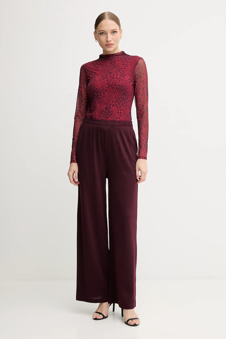 Marc Aurel spodnie damskie kolor bordowy szerokie high waist 1891-7000-73813