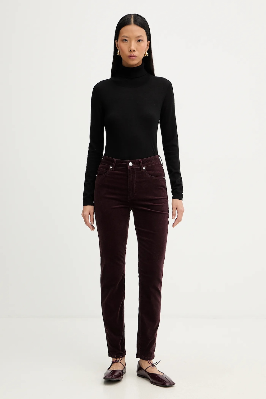 Marc O'Polo spodnie damskie kolor bordowy dopasowane high waist 511096811111