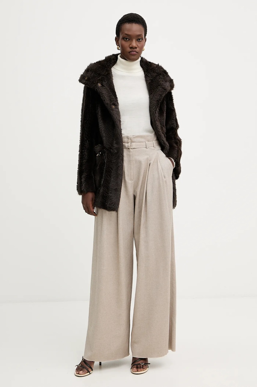 Marella spodnie z dodatkiem wełny damskie kolor beżowy szerokie high waist 2523136192200
