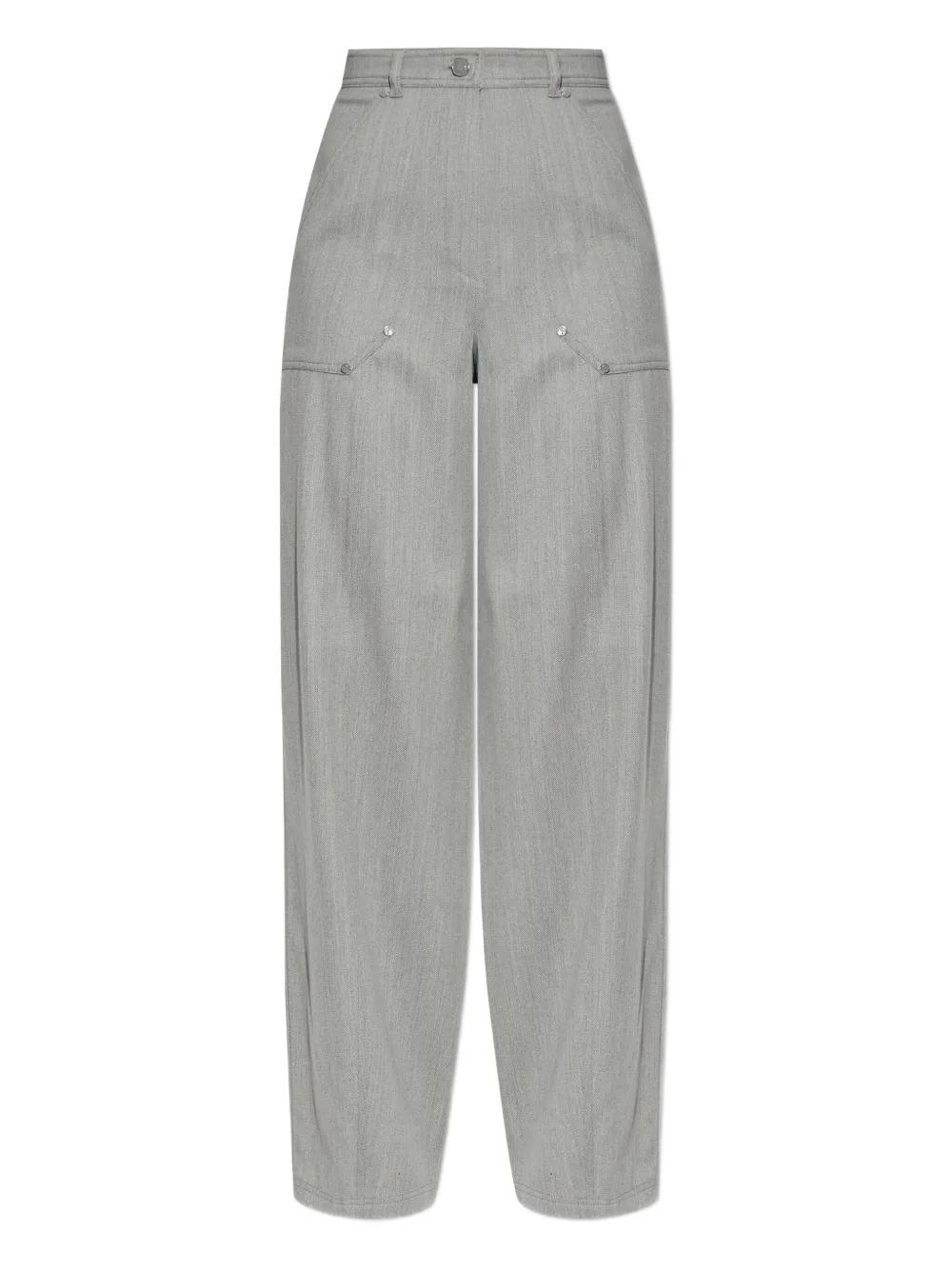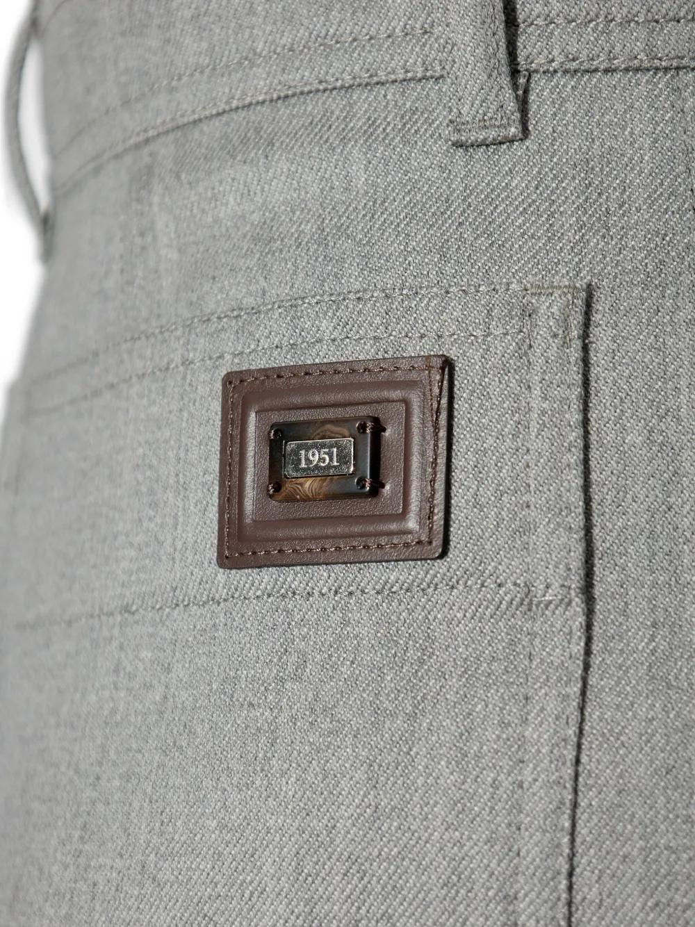 light grey seam detail belt loops rear logo patch button fastening front pockets