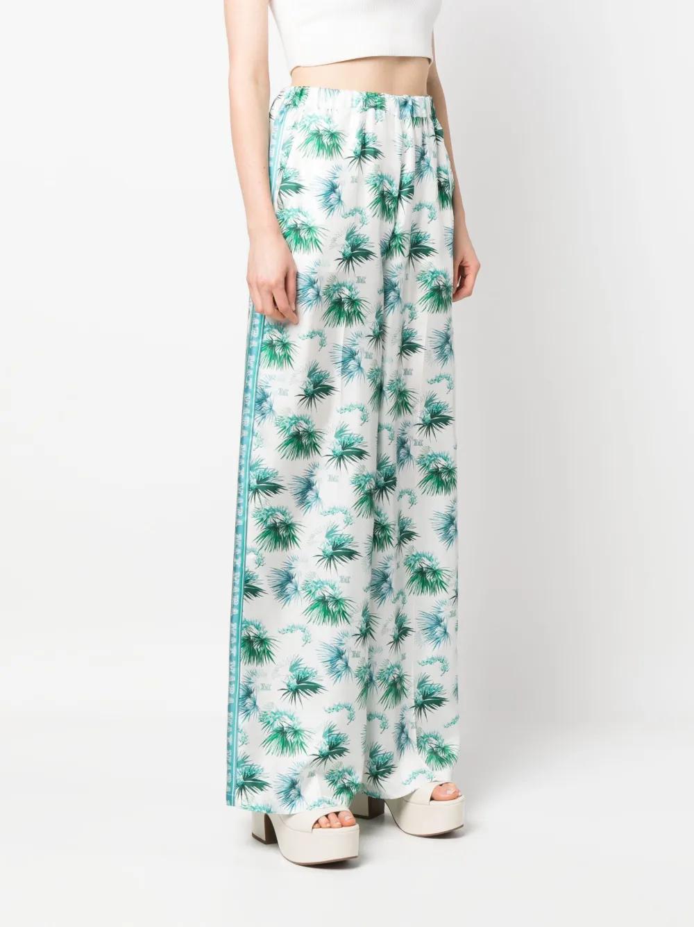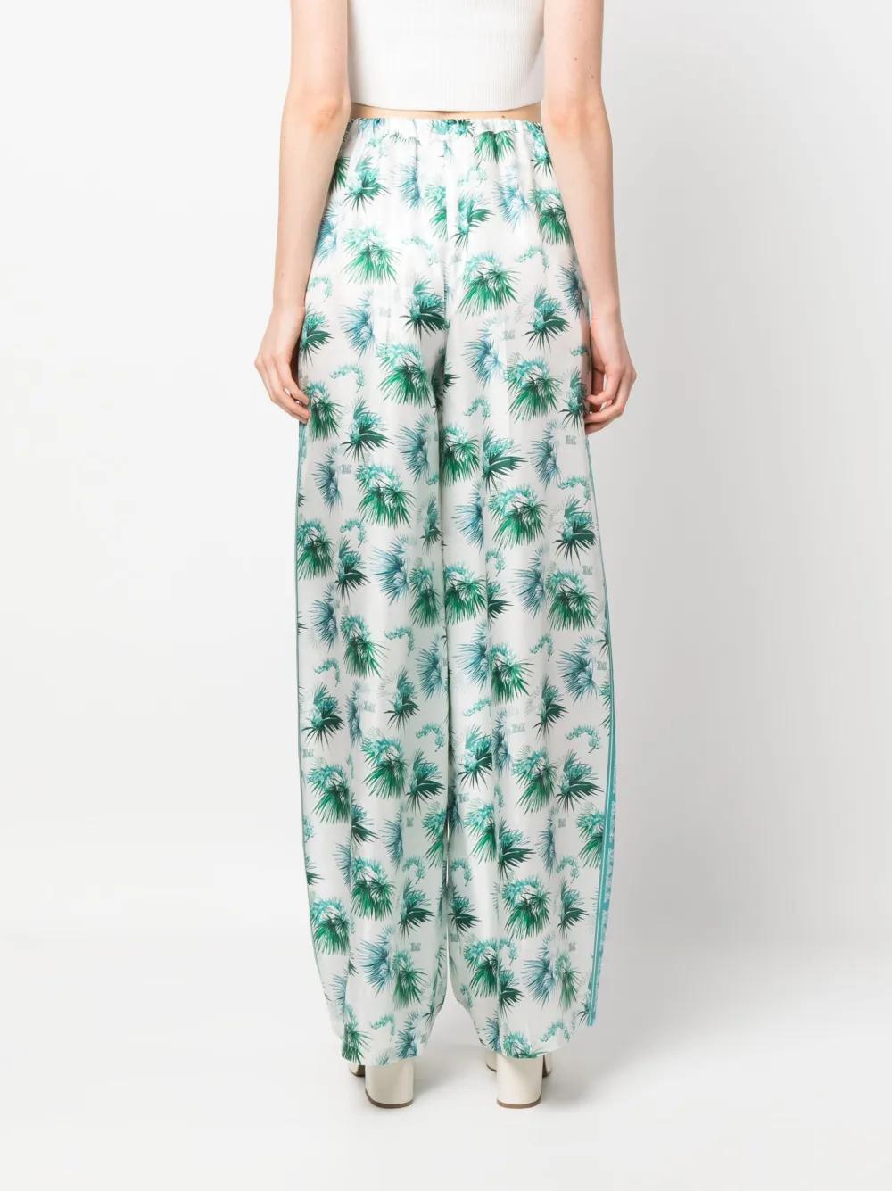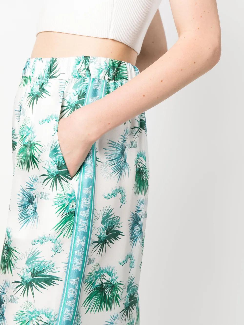 white/green silk all-over graphic print elasticated waistband two side inset pockets