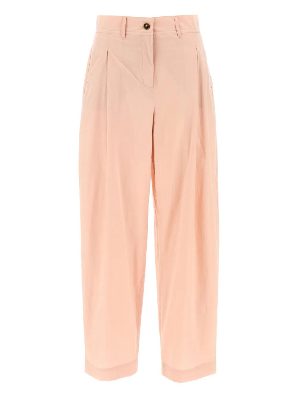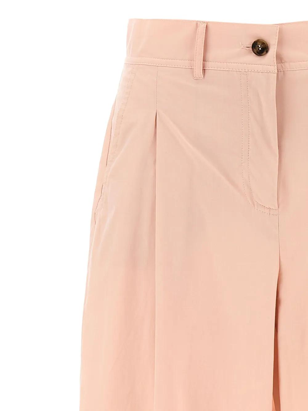 soft pink dart detailing side pockets back welt pockets tapered leg button closure