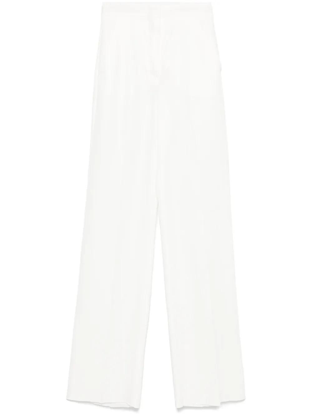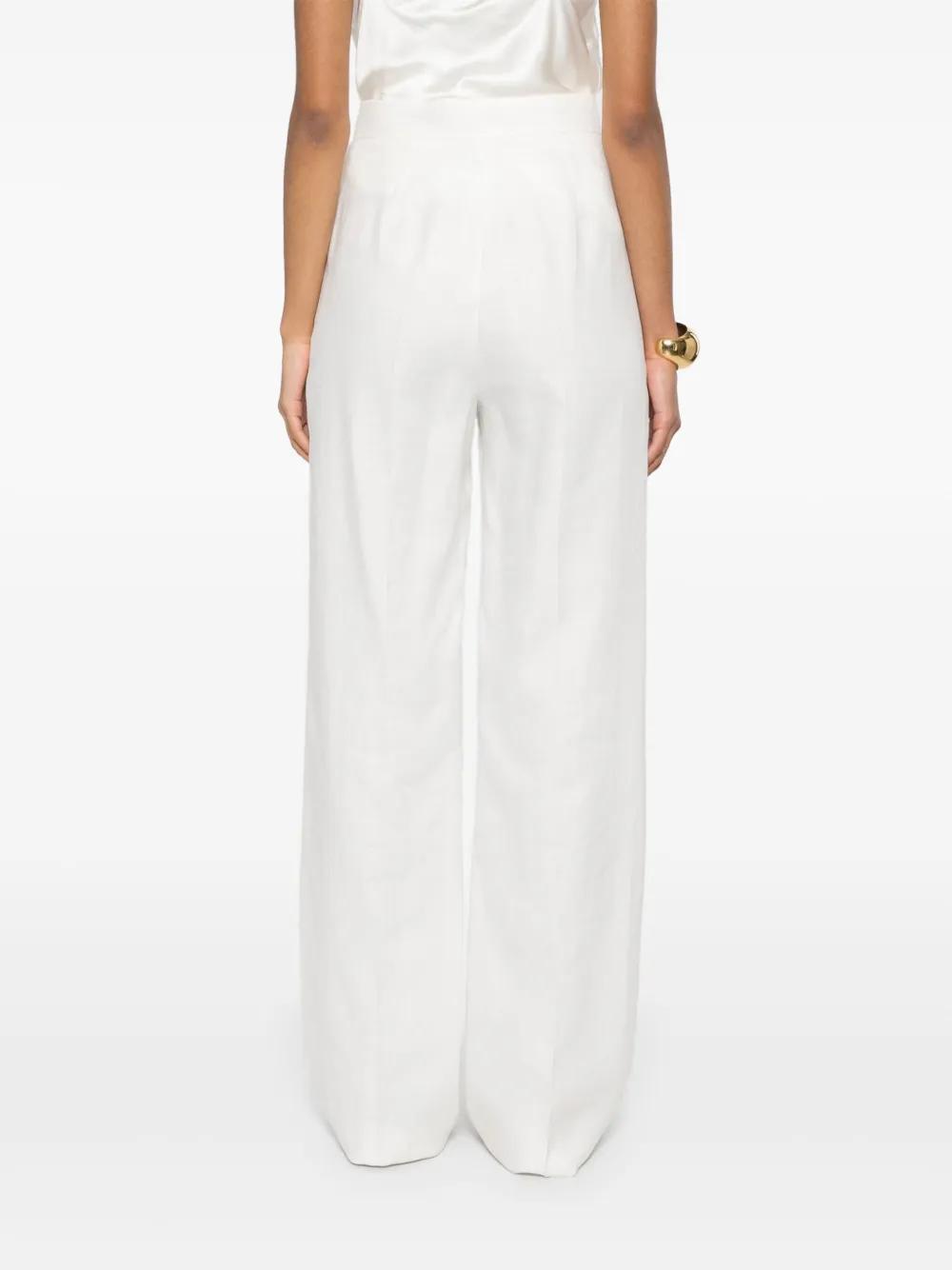 white concealed front button, hook and zip fastening two side inset pockets embroidered logo to the rear pressed crease