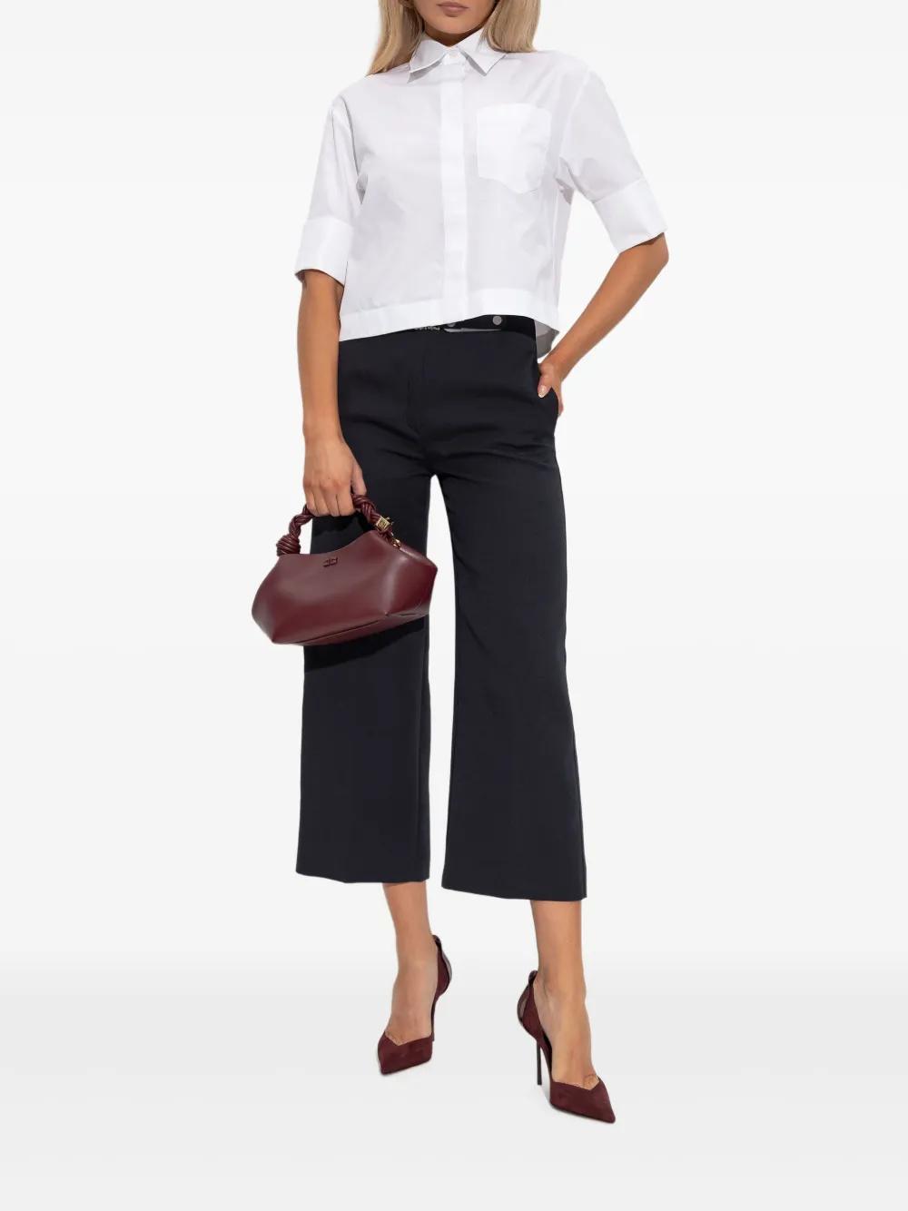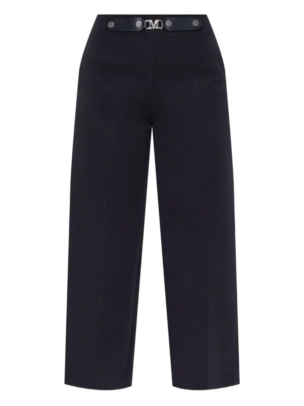 navy blue logo buckle wide leg cropped side pockets
