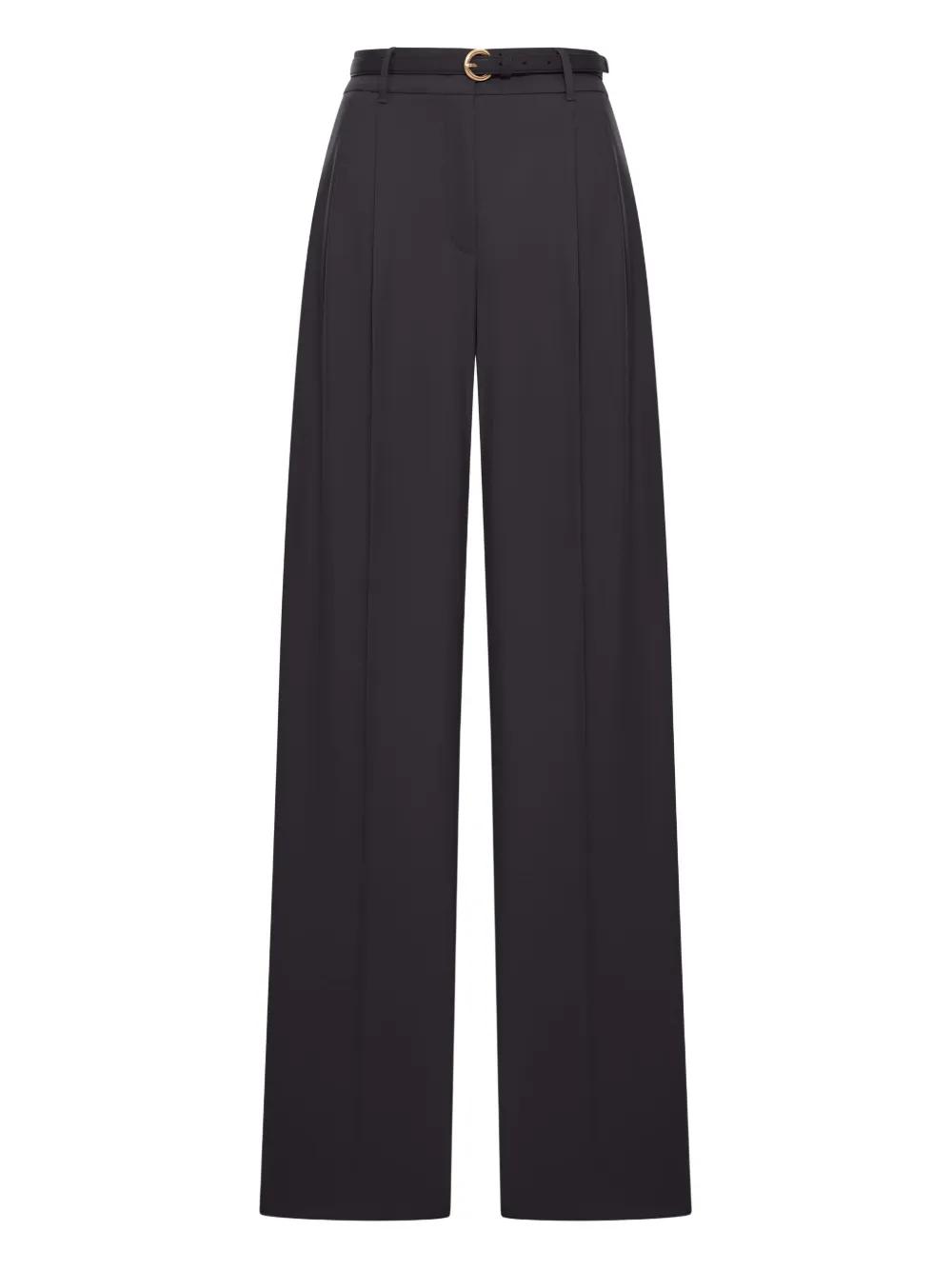 coffee brown concealed front button, hook and zip fastening two side slit pockets two rear welt pockets straight leg