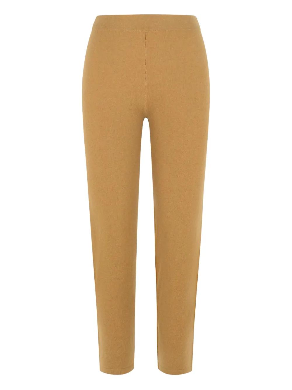 chocolate brown concealed front fastening two side slit pockets belt loops tapered leg