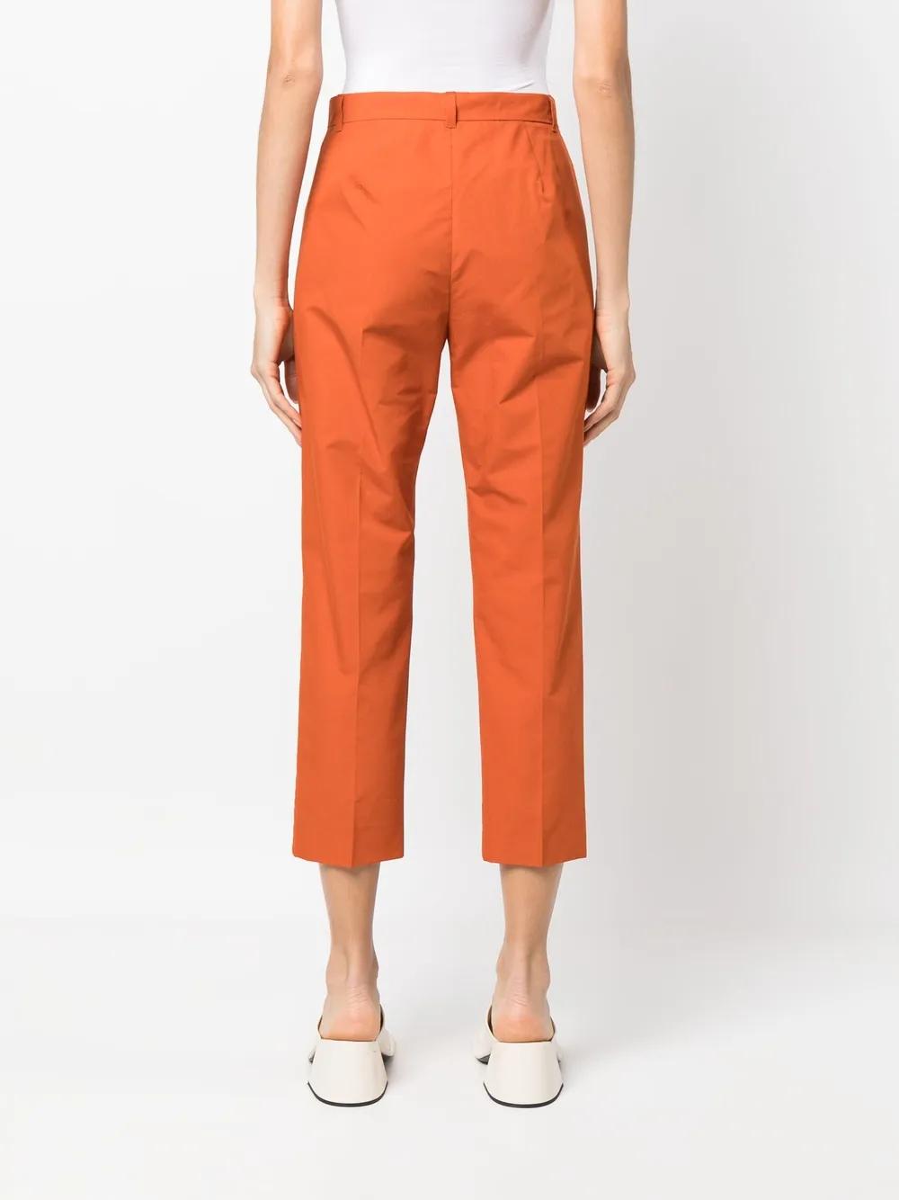 pumpkin orange cotton-silk blend mid-rise belt loops pressed crease concealed front fastening two side slit pockets cropped leg